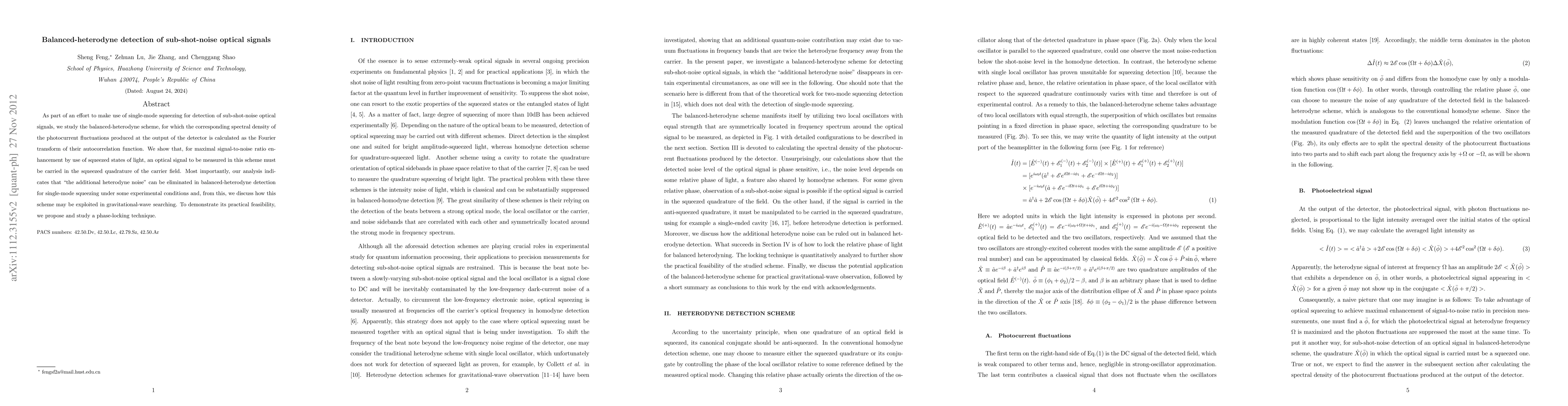 This paper explores balanced-heterodyne detection for achieving sub-shot-noise optical signals using squeezed states of light, demonstrating that optimal signal-to-noise ratio enhancement requires the signal to be in the squeezed quadrature. It also proposes a phase-locking technique to eliminate additional heterodyne noise and discusses its potential for gravitational-wave detection.