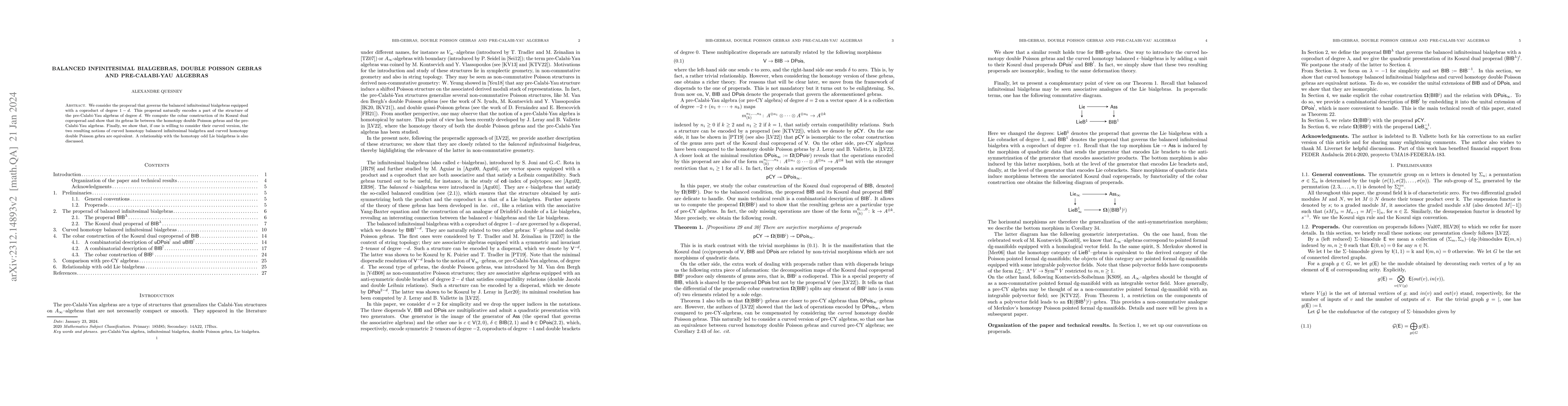 This paper explores the properad for balanced infinitesimal bialgebras, establishing connections to pre-Calabi-Yau algebras and showing the equivalence of curved homotopy versions of these structures. It also relates these findings to homotopy double Poisson gebras and homotopy odd Lie bialgebras.