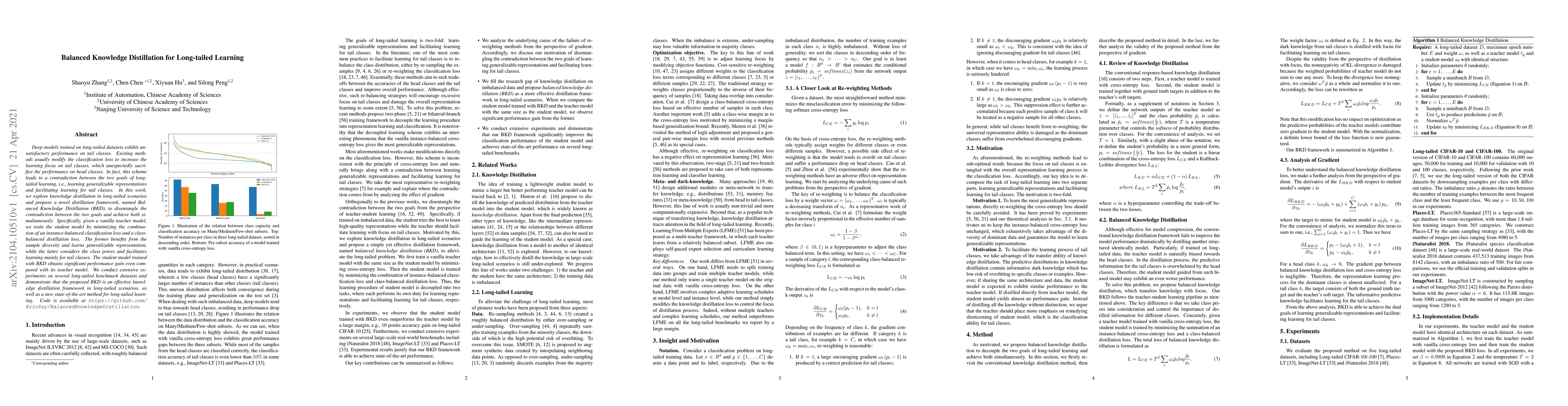 This paper introduces Balanced Knowledge Distillation (BKD), a novel framework that addresses the contradiction in long-tailed learning by simultaneously improving performance on both head and tail classes. BKD combines an instance-balanced classification loss with a class-balanced distillation loss, leading to significant performance gains over the teacher model, as demonstrated through extensive experiments on long-tailed datasets.