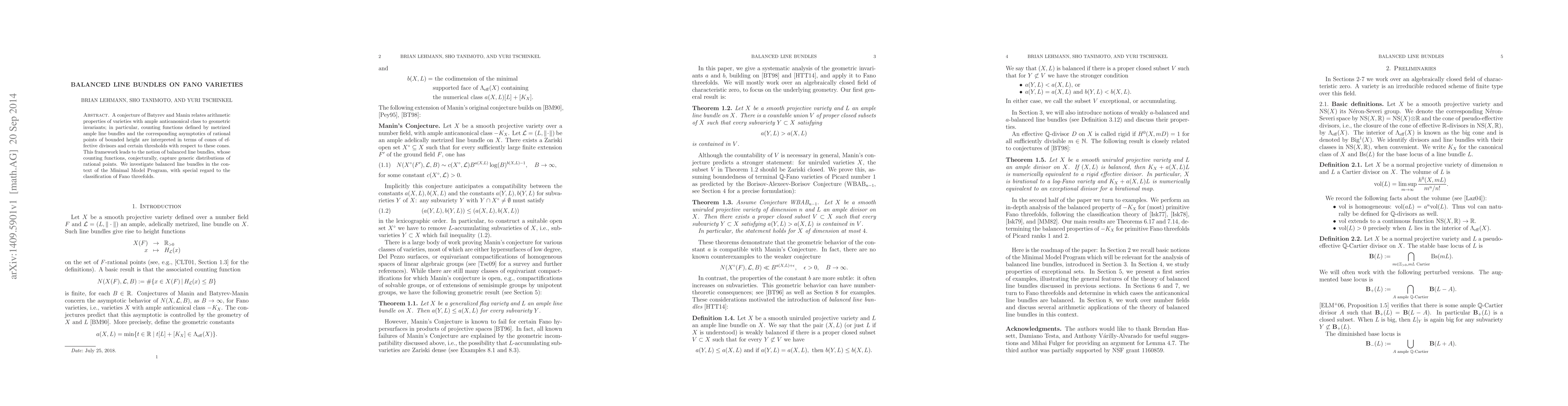 This paper explores the conjecture by Batyrev and Manin linking arithmetic properties of Fano varieties to geometric invariants, introducing balanced line bundles to conjectured capture of rational point distributions. The study focuses on the classification of Fano threefolds within the Minimal Model Program framework.