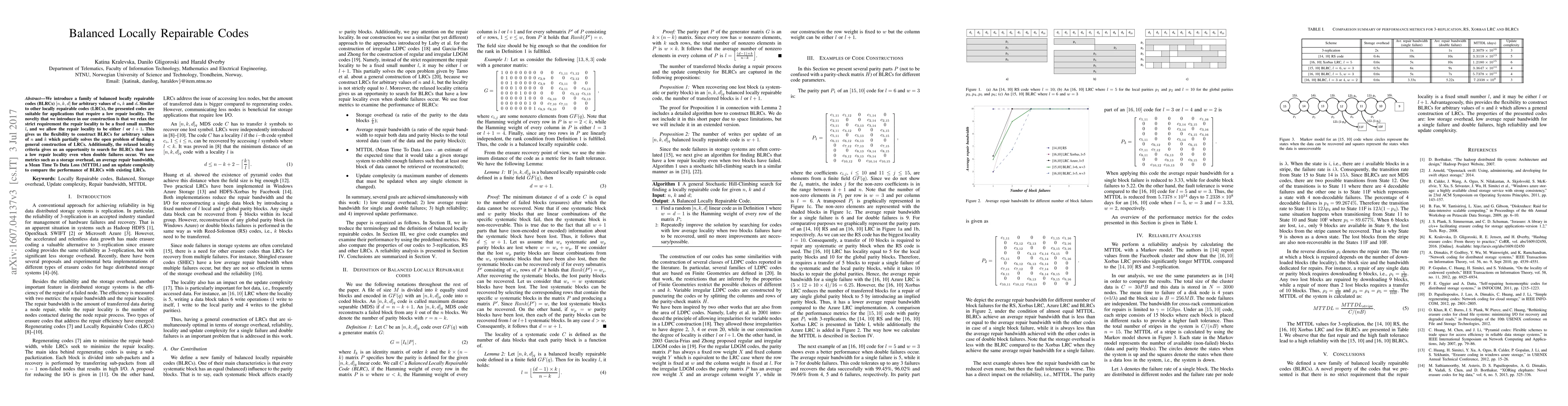 The development of a new family of locally repairable codes with improved performance and efficiency.