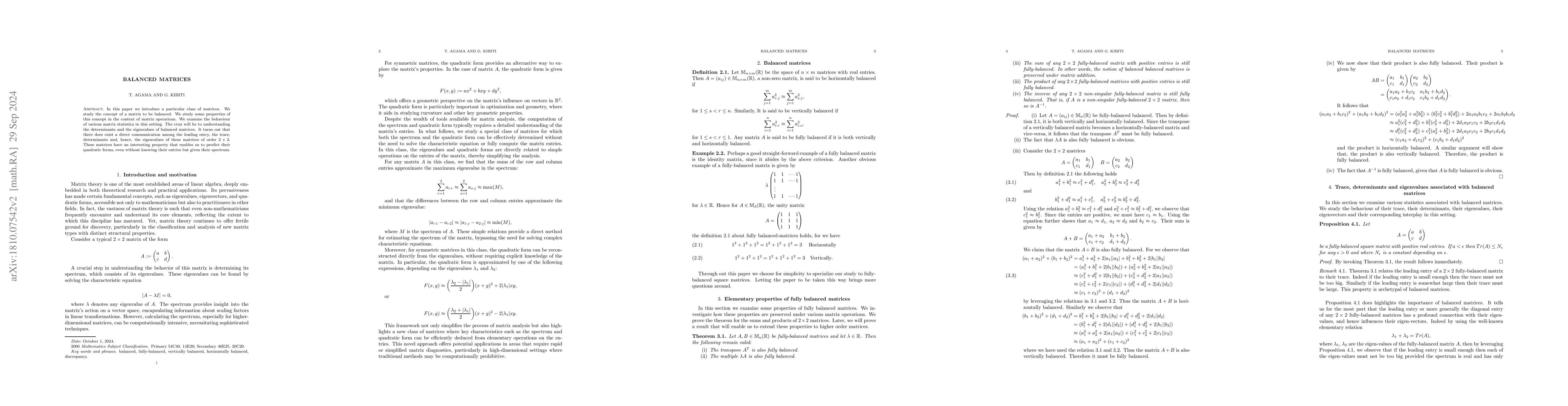 This paper introduces a class of matrices known as balanced matrices, which exhibit unique properties that enable predicting their quadratic forms based on their eigen-values. Researchers found a direct connection between the leading entry, trace, determinants, and eigen-values in 2x2 balanced matrices.