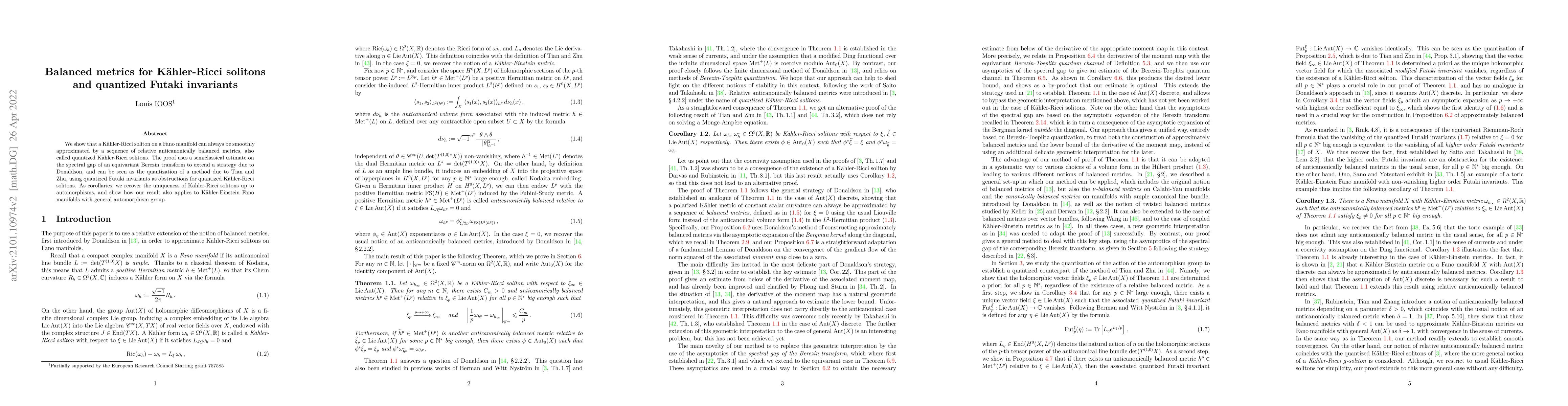 This paper demonstrates that Kähler-Ricci solitons on Fano manifolds can be approximated by relative anticanonically balanced metrics, referred to as quantized Kähler-Ricci solitons. It employs semiclassical estimates and quantized Futaki invariants to extend Donaldson's and Tian-Zhu's methods, leading to the uniqueness of Kähler-Ricci solitons and their application to Kähler-Einstein Fano manifolds.