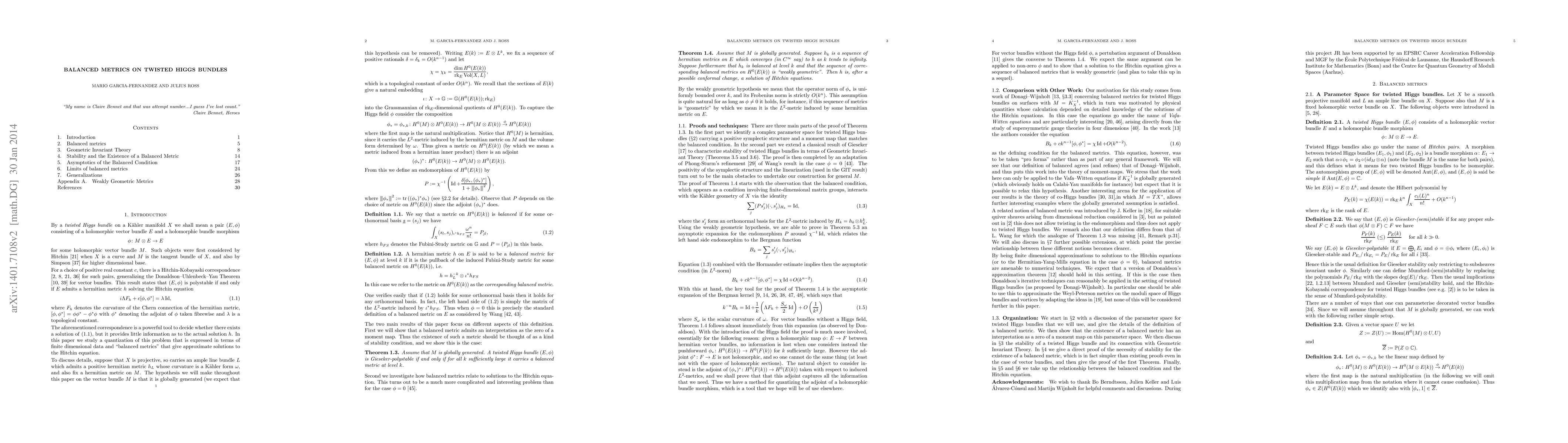 A twisted Higgs bundle on a K\"ahler manifold $X$ is a pair $(E,\phi)$ consisting of a holomorphic vector bundle $E$ and a holomorphic bundle morphism $\phi\colon M\otimes E \to E$ for some holomorphic vector bundle $M$. Such objects were first considered by Hitchin when $X$ is a curve and $M$ is the tangent bundle of $X$, and also by Simpson for higher dimensional base. The Hitchin-Kobayashi correspondence for such pairs states that $(E,\phi)$ is polystable if and only if $E$ admits a hermitian metric solving the Hitchin equation. This correspondence is a powerful tool to decide whether there exists a solution of the equation, but it provides little information as to the actual solution. In this paper we study a quantization of this problem that is expressed in terms of finite dimensional data and balanced metrics that give approximate solutions to the Hitchin equation. Motivation for this study comes from work of Donagi--Wijnholt on arXiv:1104.2610 concerning balanced metrics for the Vafa-Witten equations.