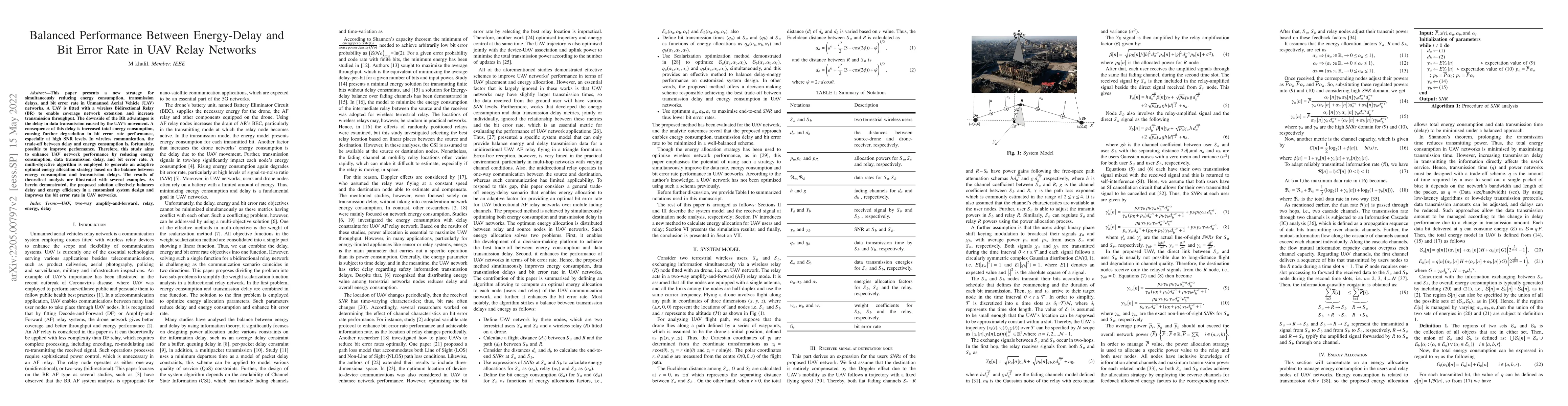 This paper proposes a strategy to optimize energy consumption, transmission delays, and bit error rates in UAV relay networks using a wireless Bidirectional Relay. It employs a multi-objective algorithm to achieve an adaptive optimal energy allocation, demonstrating improved performance through theoretical analysis and examples.