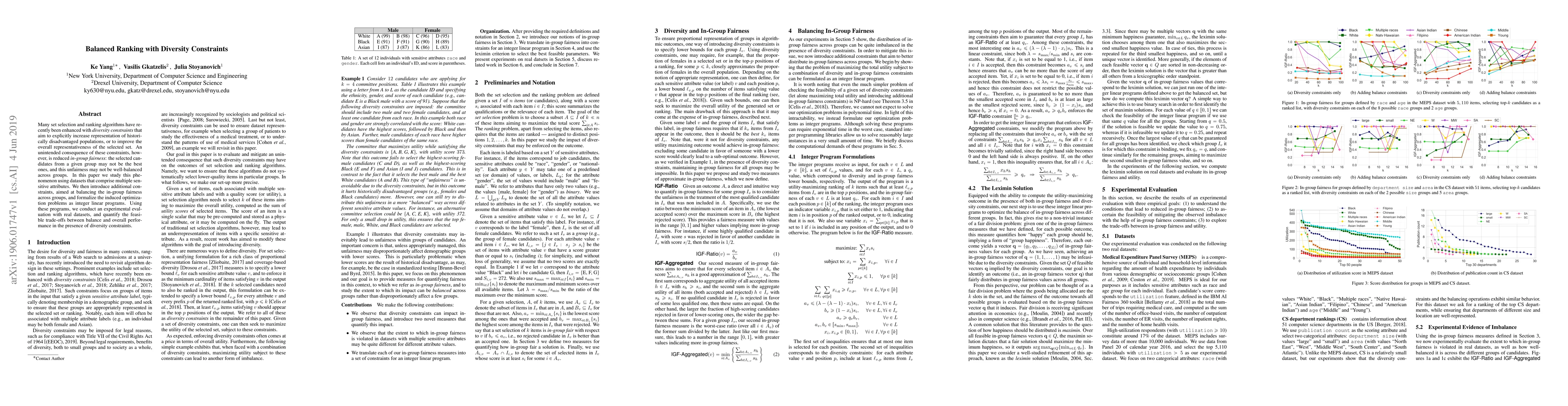 This paper investigates the trade-offs between diversity and in-group fairness in ranking algorithms, proposing additional constraints to balance fairness across groups. It formalizes these constraints as integer linear programs and evaluates their effectiveness using real datasets.