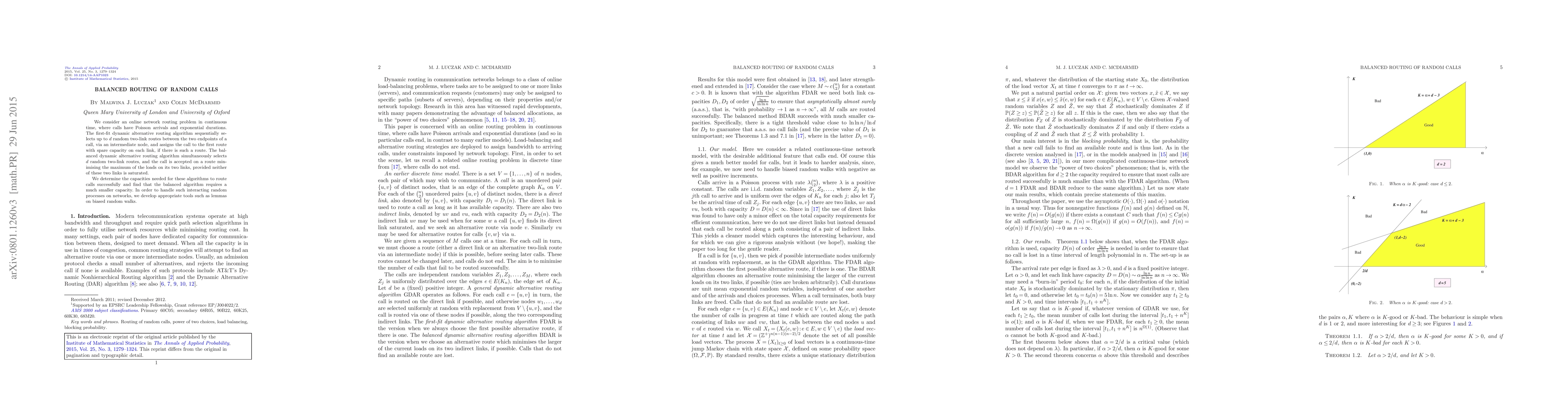 Researchers developed two routing algorithms for online networks with random calls, finding that the 'balanced' algorithm requires significantly less capacity than the traditional approach.