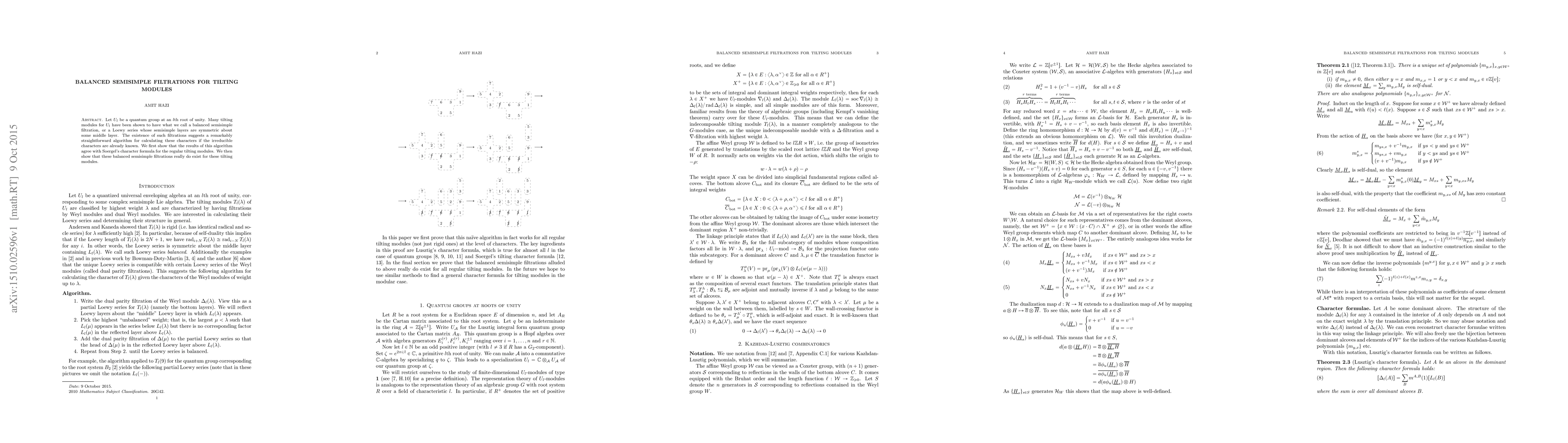 This paper explores balanced semisimple filtrations in tilting modules for quantum groups at roots of unity, revealing a symmetrical Loewy series structure. It presents an algorithm for calculating these characters and confirms its validity through comparison with Soergel's character formula for regular tilting modules.
