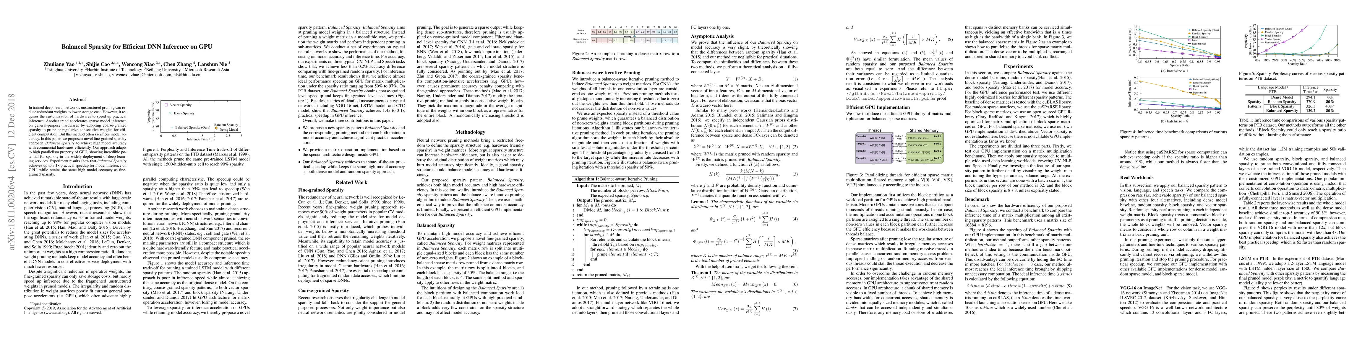 This paper proposes balanced sparsity, a fine-grained approach to achieve efficient deep neural network inference on GPUs without sacrificing model accuracy. Experiments show it achieves up to 3.1x speedup compared to traditional methods while maintaining high accuracy.