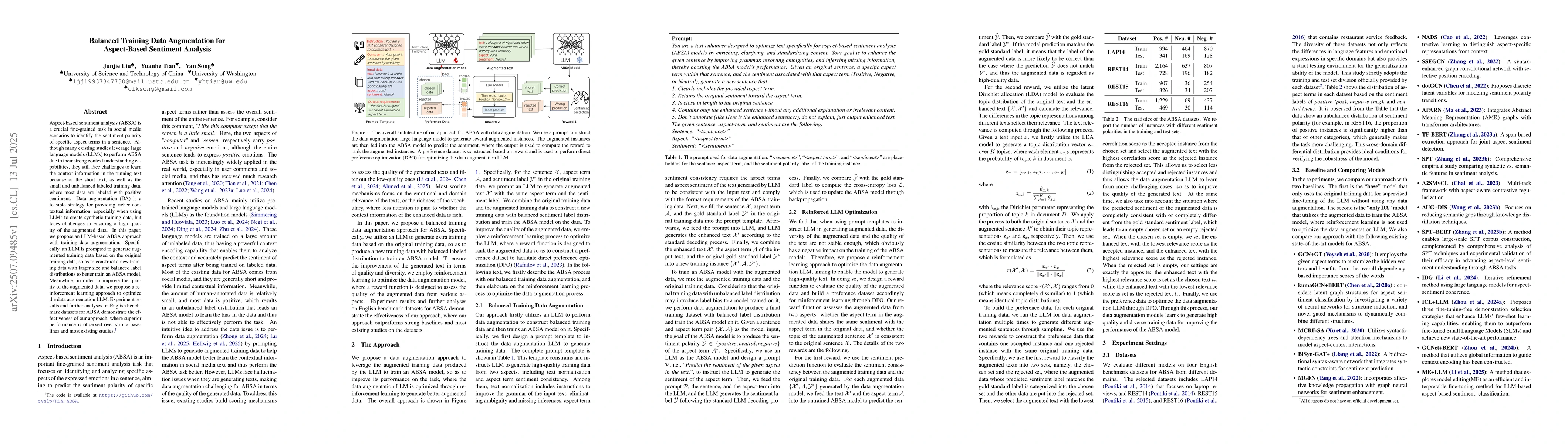 Aspect-based sentiment analysis (ABSA) is a crucial fine-grained task in social media scenarios to identify the sentiment polarity of specific aspect terms in a sentence. Although many existing studies leverage large language models (LLMs) to perform ABSA due to their strong context understanding capabilities, they still face challenges to learn the context information in the running text because of the short text, as well as the small and unbalanced labeled training data, where most data are labeled with positive sentiment. Data augmentation (DA) is a feasible strategy for providing richer contextual information, especially when using LLMs to create synthetic training data, but faces challenges in ensuring a high quality of the augmented data.In this paper, we propose an LLM-based ABSA approach with training data augmentation.Specifically, an LLM is prompted to generate augmented training data based on the original training data, so as to construct a new training data with larger size and balanced label distributions to better train an ABSA model. Meanwhile, in order to improve the quality of the augmented data, we propose a reinforcement learning approach to optimize the data augmentation. LLM.Experiment results and further analyses on English benchmark datasets for ABSA demonstrate the effectiveness of our approach, where superior performance is observed over strong baselines and most existing studies.