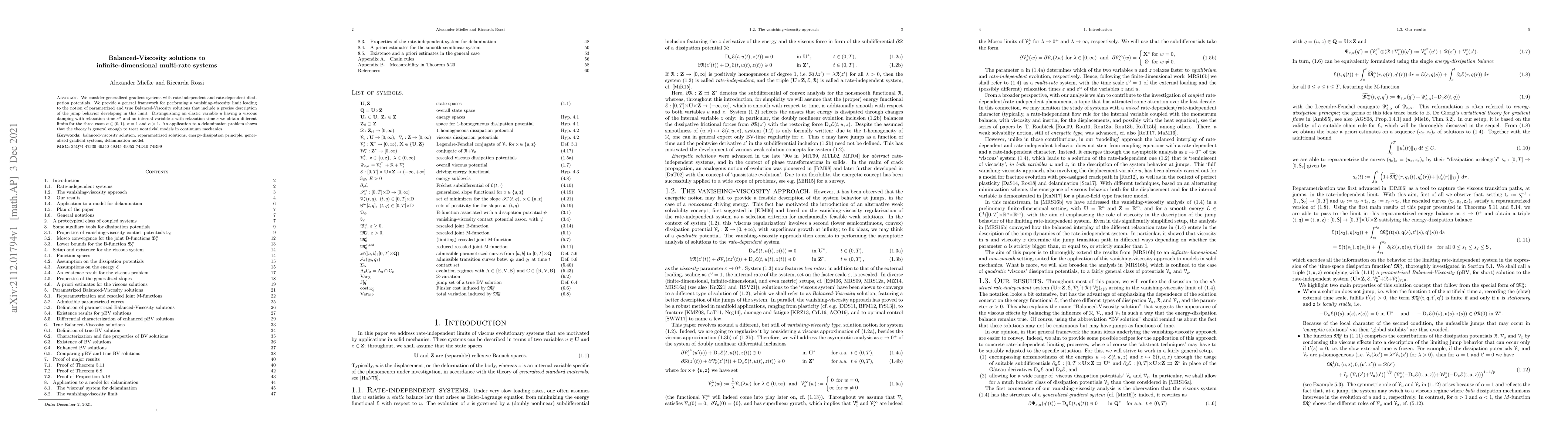 This paper develops a framework for Balanced-Viscosity solutions in infinite-dimensional multi-rate systems, distinguishing between elastic and internal variables with different relaxation times. The study provides insights into jump behavior and applies the theory to a delamination problem in continuum mechanics.