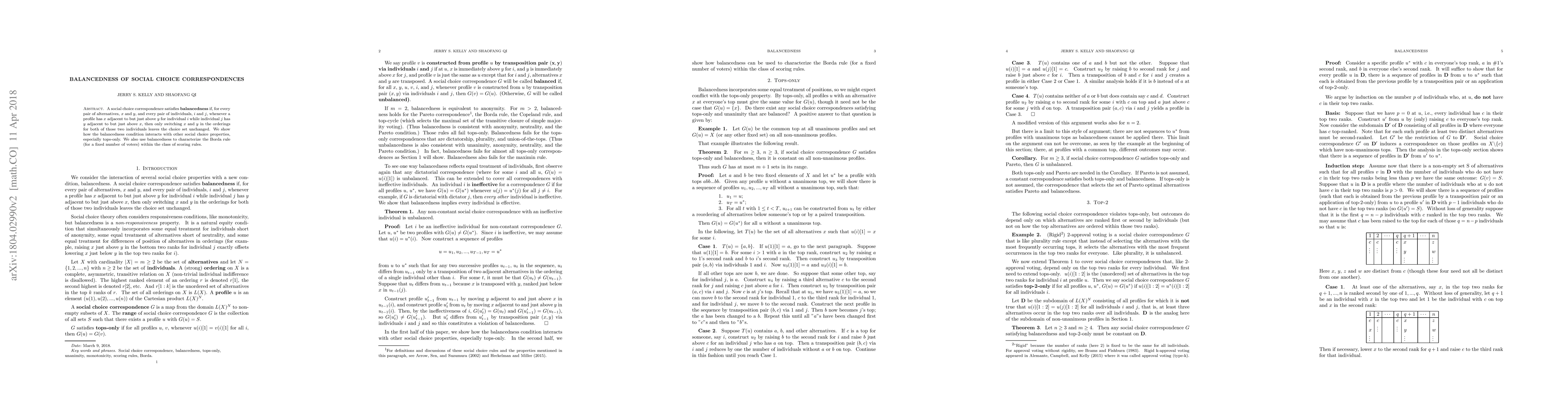 This paper explores the balancedness condition in social choice theory, demonstrating its interaction with other properties like tops-only. It characterizes the Borda rule within scoring rules using balancedness, highlighting its significance in voter preference aggregation.