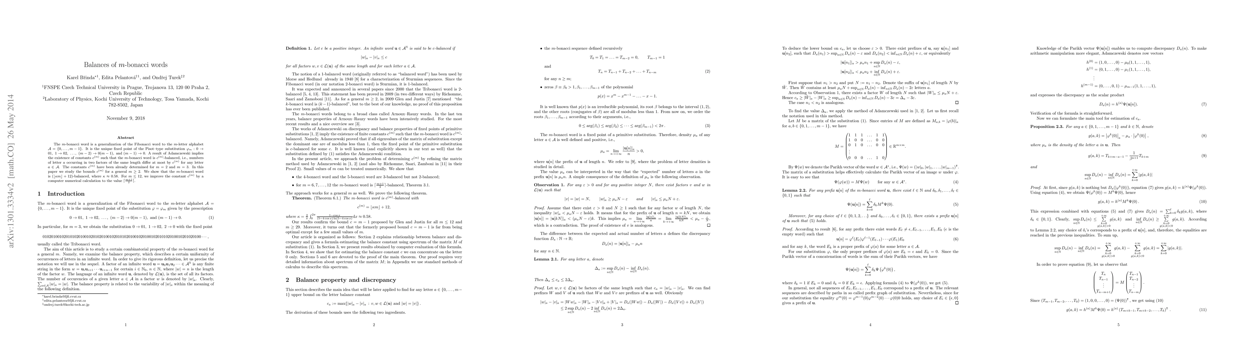 The $m$-bonacci word is a generalization of the Fibonacci word to the $m$-letter alphabet $\mathcal{A} = {0,...,m-1}$. It is the unique fixed point of the Pisot--type substitution $ \varphi_m: 0\to 01, 1\to 02, ..., (m-2)\to0(m-1), and (m-1)\to0$. A result of Adamczewski implies the existence of constants $c^{(m)}$ such that the $m$-bonacci word is $c^{(m)}$-balanced, i.e., numbers of letter $a$ occurring in two factors of the same length differ at most by $c^{(m)}$ for any letter $a\in \mathcal{A}$. The constants $c^{(m)}$ have been already determined for $m=2$ and $m=3$. In this paper we study the bounds $c^{(m)}$ for a general $m\geq2$. We show that the $m$-bonacci word is $(\lfloor \kappa m \rfloor +12)$-balanced, where $\kappa \approx 0.58$. For $m\leq 12$, we improve the constant $c^{(m)}$ by a computer numerical calculation to the value $\lceil\frac{m+1}{2}\rceil$.