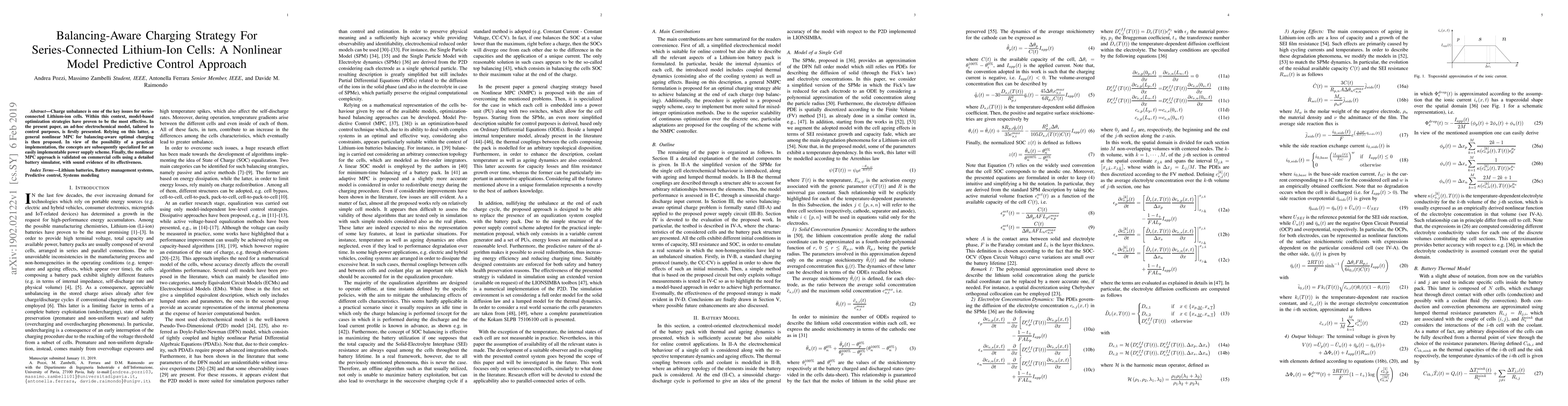 Charge unbalance is one of the key issues for series-connected Lithium-ion cells. Within this context, model-based optimization strategies have proven to be the most effective. In the present paper, an ad-hoc electrochemical model, tailored to control purposes, is firstly presented. Relying on this latter, a general nonlinear MPC for balancing-aware optimal charging is then proposed. In view of the possibility of a practical implementation, the concepts are subsequently specialized for an easily implementable power supply scheme. Finally, the nonlinear MPC approach is validated on commercial cells using a detailed battery simulator, with sound evidence of its effectiveness.
