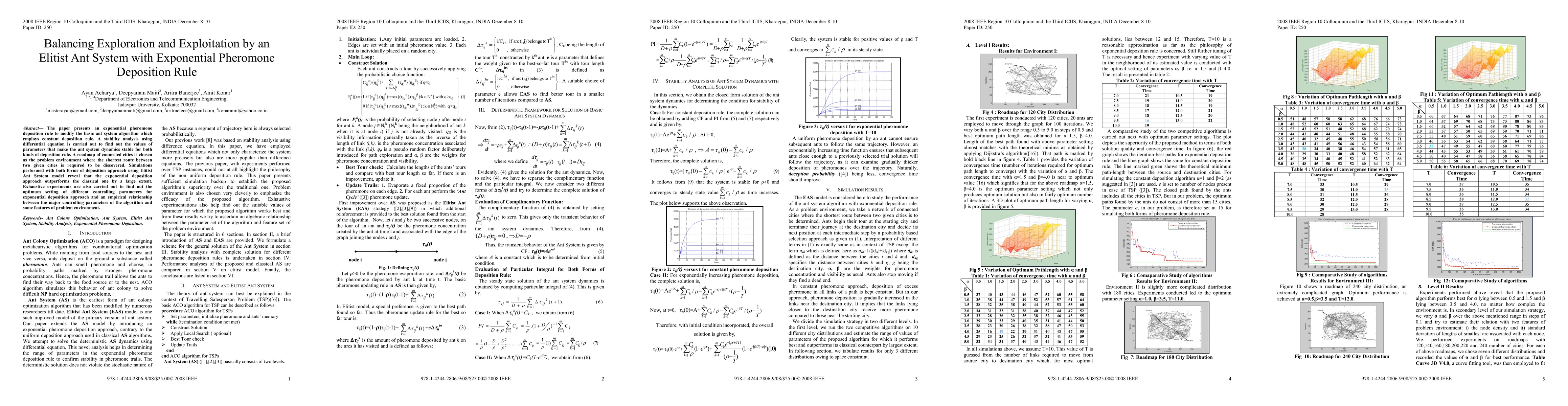 The paper introduces an exponential pheromone deposition rule in the Elitist Ant System to enhance exploration and exploitation balance, demonstrating superior performance over the traditional constant deposition rule through stability analysis and simulations on a city route optimization problem. Optimal parameter settings for the exponential approach are identified, revealing an empirical relationship between algorithm parameters and problem features.