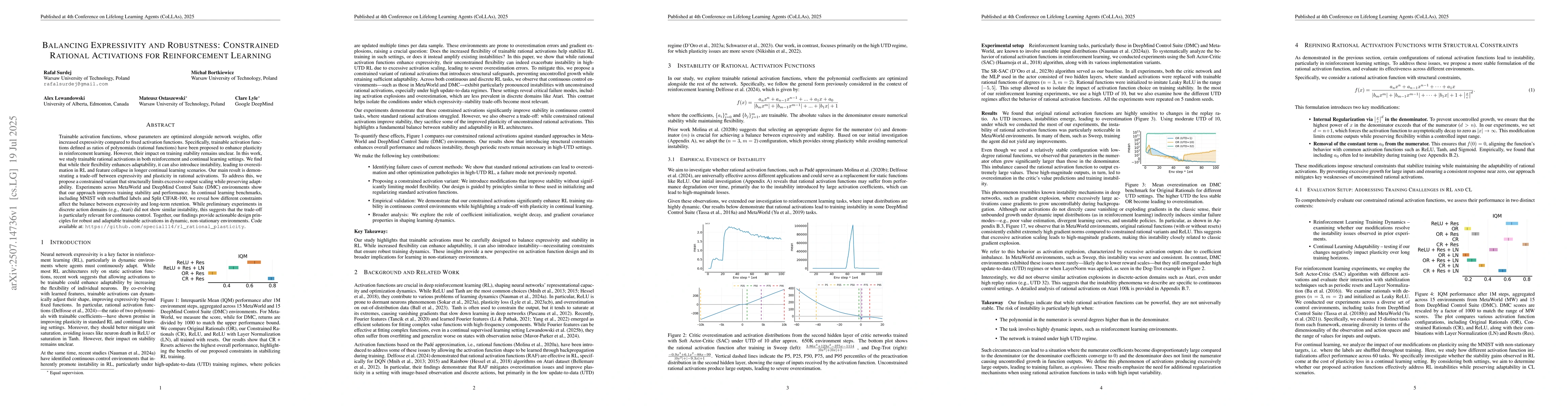 Trainable activation functions, whose parameters are optimized alongside network weights, offer increased expressivity compared to fixed activation functions. Specifically, trainable activation functions defined as ratios of polynomials (rational functions) have been proposed to enhance plasticity in reinforcement learning. However, their impact on training stability remains unclear. In this work, we study trainable rational activations in both reinforcement and continual learning settings. We find that while their flexibility enhances adaptability, it can also introduce instability, leading to overestimation in RL and feature collapse in longer continual learning scenarios. Our main result is demonstrating a trade-off between expressivity and plasticity in rational activations. To address this, we propose a constrained variant that structurally limits excessive output scaling while preserving adaptability. Experiments across MetaWorld and DeepMind Control Suite (DMC) environments show that our approach improves training stability and performance. In continual learning benchmarks, including MNIST with reshuffled labels and Split CIFAR-100, we reveal how different constraints affect the balance between expressivity and long-term retention. While preliminary experiments in discrete action domains (e.g., Atari) did not show similar instability, this suggests that the trade-off is particularly relevant for continuous control. Together, our findings provide actionable design principles for robust and adaptable trainable activations in dynamic, non-stationary environments. Code available at: https://github.com/special114/rl_rational_plasticity.