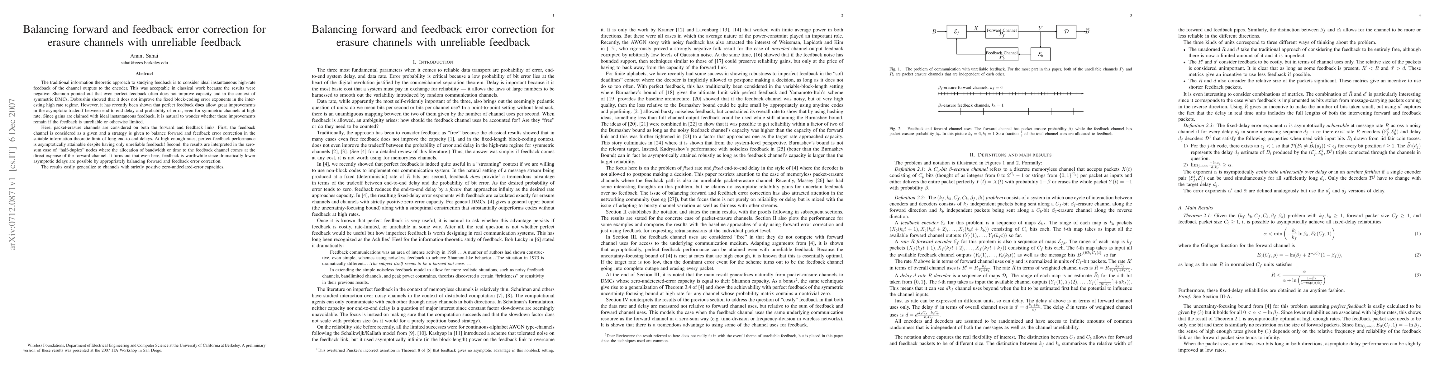 The traditional information theoretic approach to studying feedback is to consider ideal instantaneous high-rate feedback of the channel outputs to the encoder. This was acceptable in classical work because the results were negative: Shannon pointed out that even perfect feedback often does not improve capacity and in the context of symmetric DMCs, Dobrushin showed that it does not improve the fixed block-coding error exponents in the interesting high rate regime. However, it has recently been shown that perfect feedback does allow great improvements in the asymptotic tradeoff between end-to-end delay and probability of error, even for symmetric channels at high rate. Since gains are claimed with ideal instantaneous feedback, it is natural to wonder whether these improvements remain if the feedback is unreliable or otherwise limited. Here, packet-erasure channels are considered on both the forward and feedback links. First, the feedback channel is considered as a given and a strategy is given to balance forward and feedback error correction in the suitable information-theoretic limit of long end-to-end delays. At high enough rates, perfect-feedback performance is asymptotically attainable despite having only unreliable feedback! Second, the results are interpreted in the zero- sum case of "half-duplex" nodes where the allocation of bandwidth or time to the feedback channel comes at the direct expense of the forward channel. It turns out that even here, feedback is worthwhile since dramatically lower asymptotic delays are possible by appropriately balancing forward and feedback error correction. The results easily generalize to channels with strictly positive zero-undeclared-error capacities.