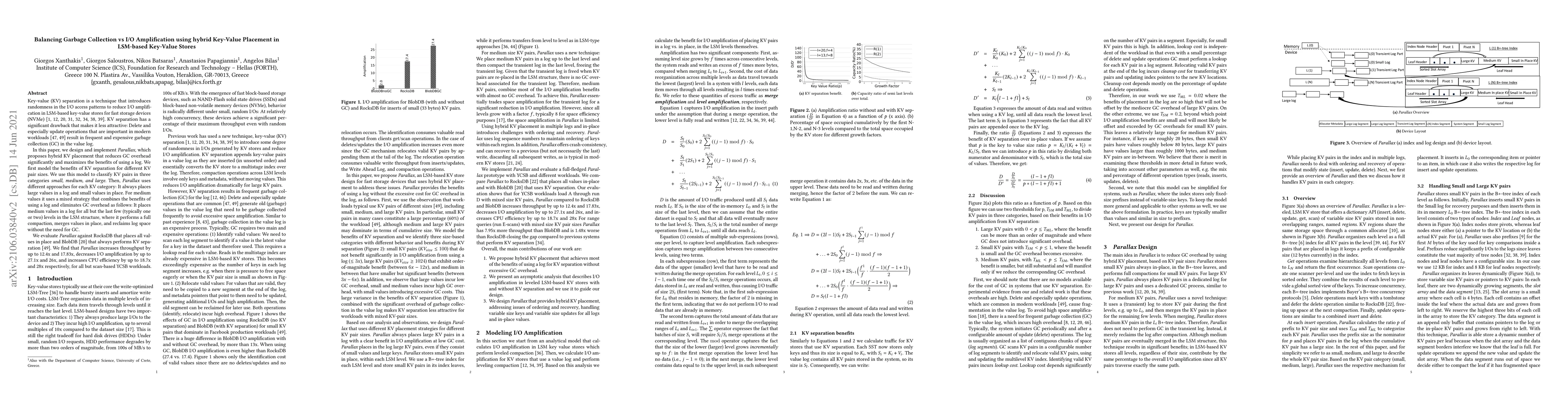 This paper introduces Parallax, a hybrid key-value placement strategy for LSM-based key-value stores to balance garbage collection overhead against I/O amplification. Parallax categorizes KV pairs and uses different placement strategies for small, medium, and large values, achieving up to 12.4x throughput increase and significant reductions in I/O amplification and CPU overhead.