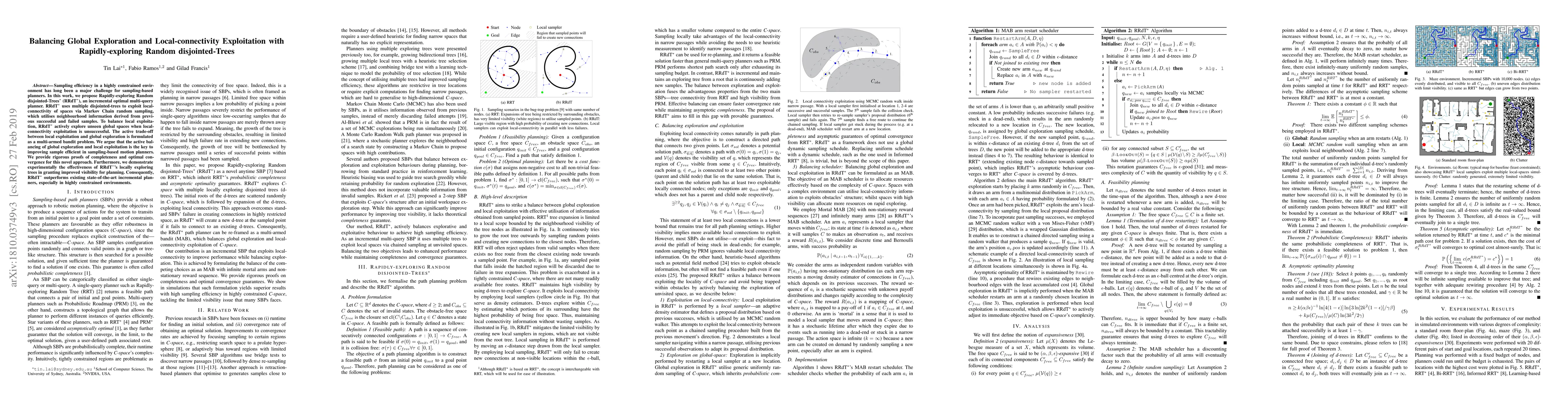 This paper introduces Rapidly-exploring Random disjointed-Trees* (RRdT*), an incremental planner that balances global exploration and local-connectivity exploitation using multiple disjointed-trees and Markov Chain sampling. RRdT* outperforms existing planners by efficiently navigating highly constrained environments.