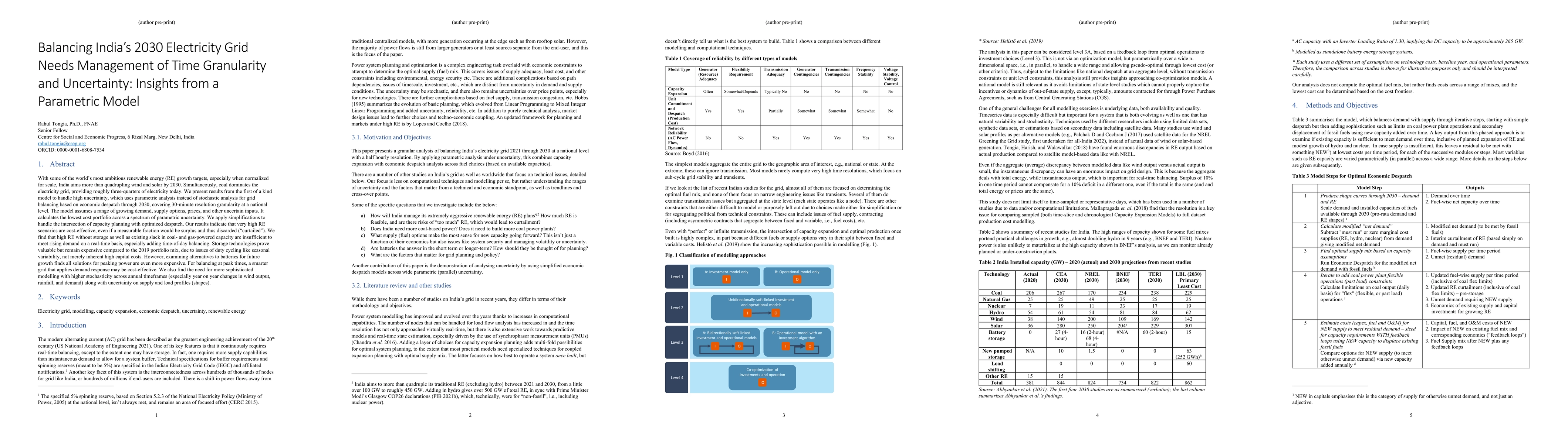With some of the world's most ambitious renewable energy (RE) growth targets, especially when normalized for scale, India aims more than quadrupling wind and solar by 2030. Simultaneously, coal dominates the electricity grid, providing roughly three-quarters of electricity today. We present results from the first of a kind model to handle high uncertainty, which uses parametric analysis instead of stochastic analysis for grid balancing based on economic despatch through 2030, covering 30-minute resolution granularity at a national level. The model assumes a range of growing demand, supply options, prices, and other uncertain inputs. It calculates the lowest cost portfolio across a spectrum of parametric uncertainty. We apply simplifications to handle the intersection of capacity planning with optimized despatch. Our results indicate that very high RE scenarios are cost-effective, even if a measurable fraction would be surplus and thus discarded ("curtailed"). We find that high RE without storage as well as existing slack in coal- and gas-powered capacity are insufficient to meet rising demand on a real-time basis, especially adding time-of-day balancing. Storage technologies prove valuable but remain expensive compared to the 2019 portfolio mix, due to issues of duty cycling like seasonal variability, not merely inherent high capital costs. However, examining alternatives to batteries for future growth finds all solutions for peaking power are even more expensive. For balancing at peak times, a smarter grid that applies demand response may be cost-effective. We also find the need for more sophisticated modelling with higher stochasticity across annual timeframes (especially year on year changes in wind output, rainfall, and demand) along with uncertainty on supply and load profiles (shapes).