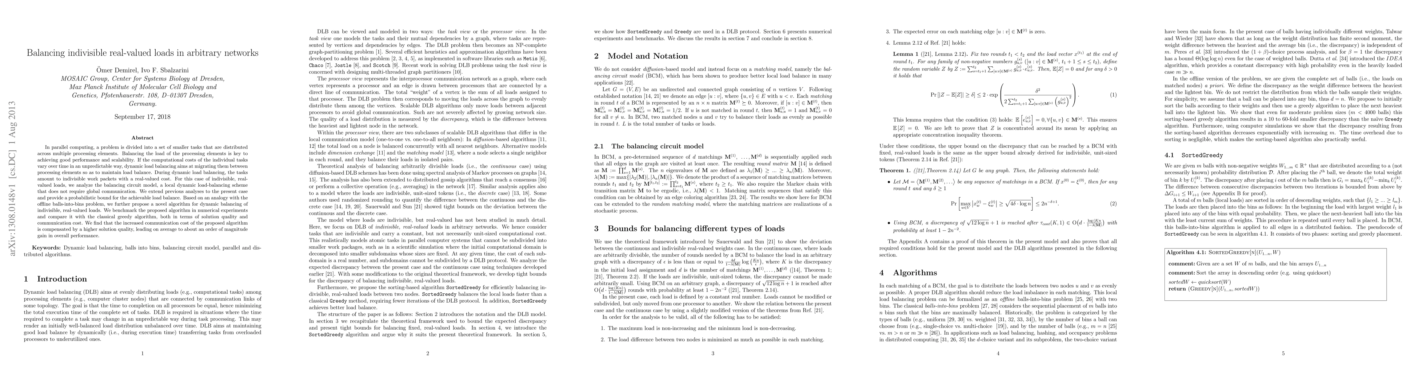 This paper proposes a novel dynamic load-balancing algorithm for indivisible, real-valued tasks in parallel computing, achieving better load balance and performance compared to the classical greedy algorithm, despite higher communication costs. The proposed algorithm is benchmarked and shown to provide significant performance gains.