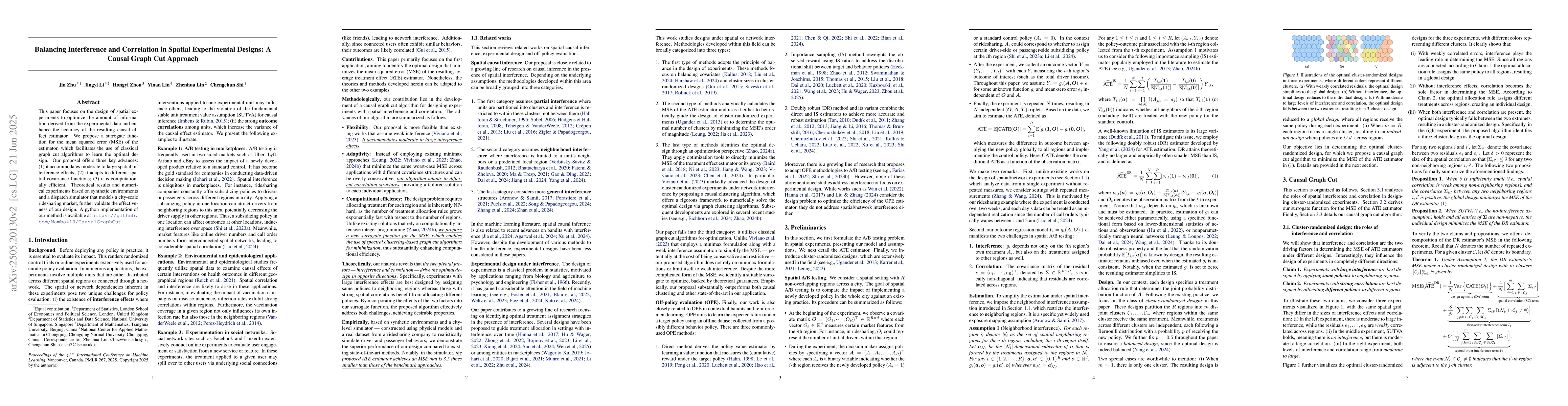 This research introduces a method using graph cut algorithms to optimize spatial experimental designs, accommodating spatial interference and varying covariance functions, while ensuring computational efficiency. Validation through synthetic environments and a ridesharing market simulator demonstrates its effectiveness.