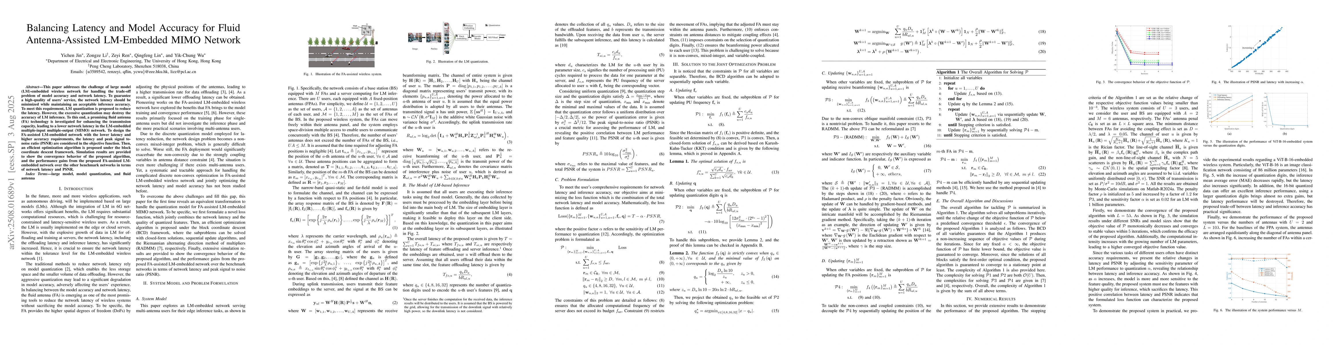 This paper addresses the challenge of large model (LM)-embedded wireless network for handling the trade-off problem of model accuracy and network latency. To guarantee a high-quality of users' service, the network latency should be minimized while maintaining an acceptable inference accuracy. To meet this requirement, LM quantization is proposed to reduce the latency. However, the excessive quantization may destroy the accuracy of LM inference. To this end, a promising fluid antenna (FA) technology is investigated for enhancing the transmission capacity, leading to a lower network latency in the LM-embedded multiple-input multiple-output (MIMO) network. To design the FA-assisted LM-embedded network with the lower latency and higher accuracy requirements, the latency and peak signal to noise ratio (PSNR) are considered in the objective function. Then, an efficient optimization algorithm is proposed under the block coordinate descent framework. Simulation results are provided to show the convergence behavior of the proposed algorithm, and the performance gains from the proposed FA-assisted LMembedded network over the other benchmark networks in terms of network latency and PSNR.