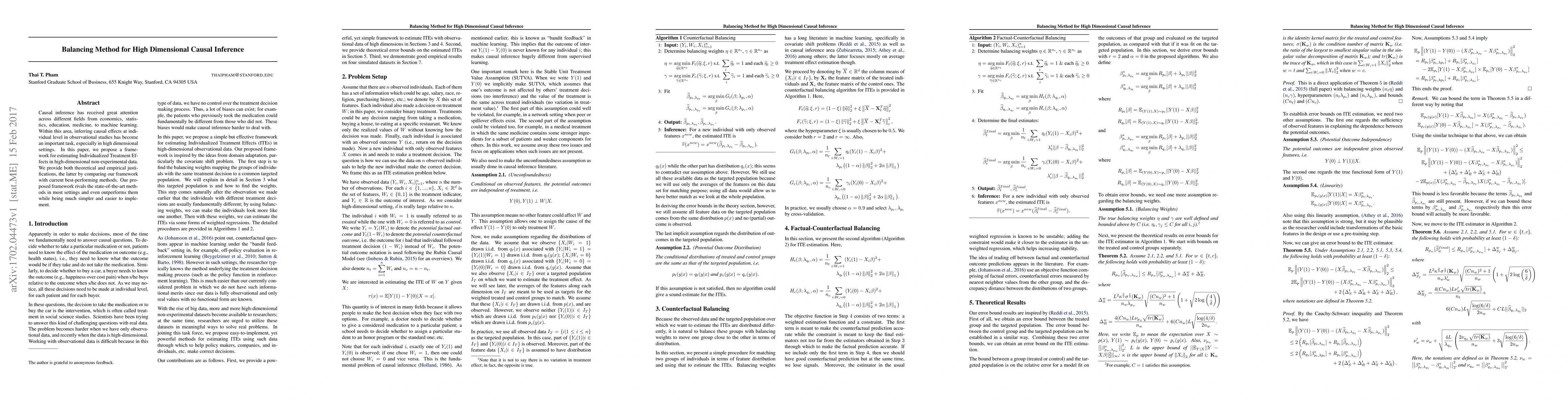This paper proposes a new framework for estimating Individualized Treatment Effects in high-dimensional observational data, offering both theoretical and empirical justifications. The proposed method rivals and often outperforms current best-performing techniques while being simpler and easier to implement.