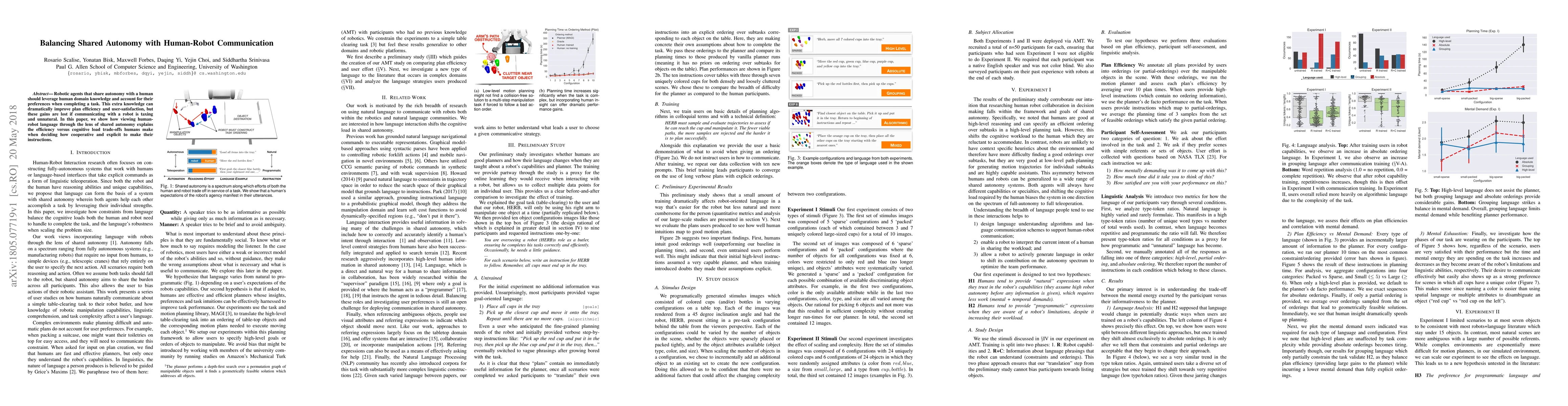 This paper explores how robotic agents can enhance task efficiency and user satisfaction by sharing autonomy with humans, emphasizing the importance of natural human-robot communication to avoid cognitive overload. It examines the trade-offs humans make between cooperative and explicit instructions in shared autonomy scenarios.