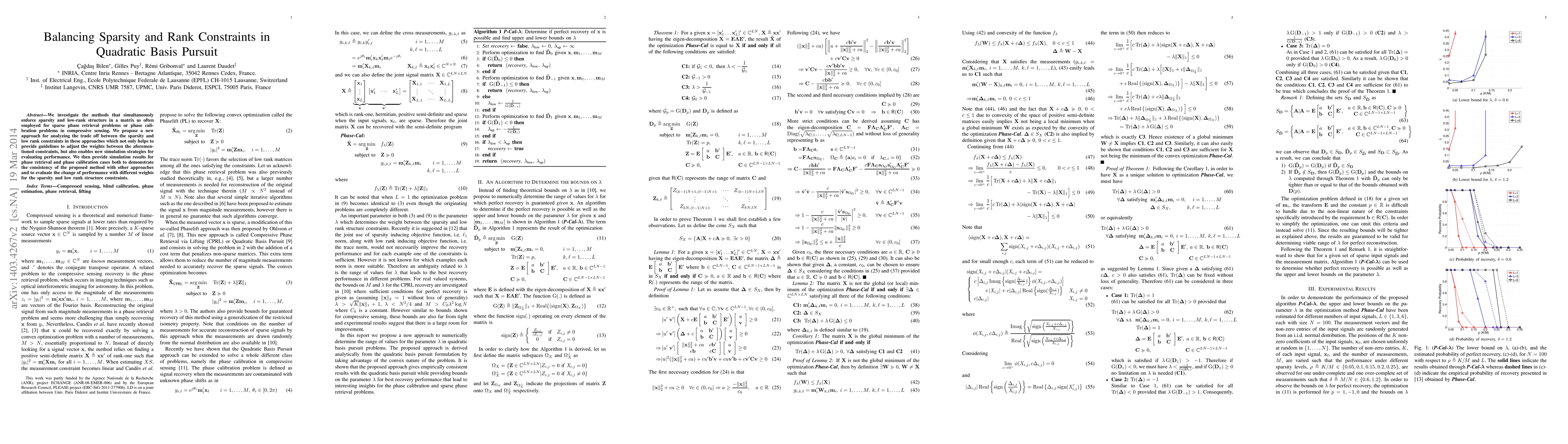 This paper proposes a novel method to analyze the balance between sparsity and low-rank constraints in quadratic basis pursuit, offering guidelines for adjusting these weights and new simulation strategies. Simulation results for phase retrieval and phase calibration demonstrate the method's consistency and performance variations with different constraint weights.