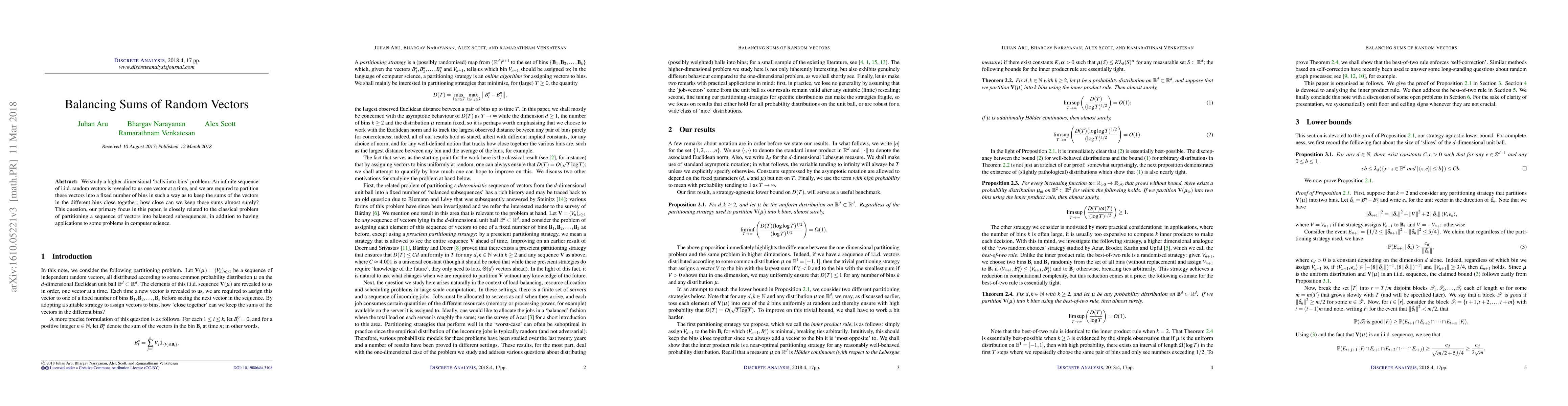This research paper investigates how to partition a sequence of random vectors into bins such that the sums of vectors in different bins are close together, almost surely. It provides insights into the problem's limitations and potential applications in computer science.