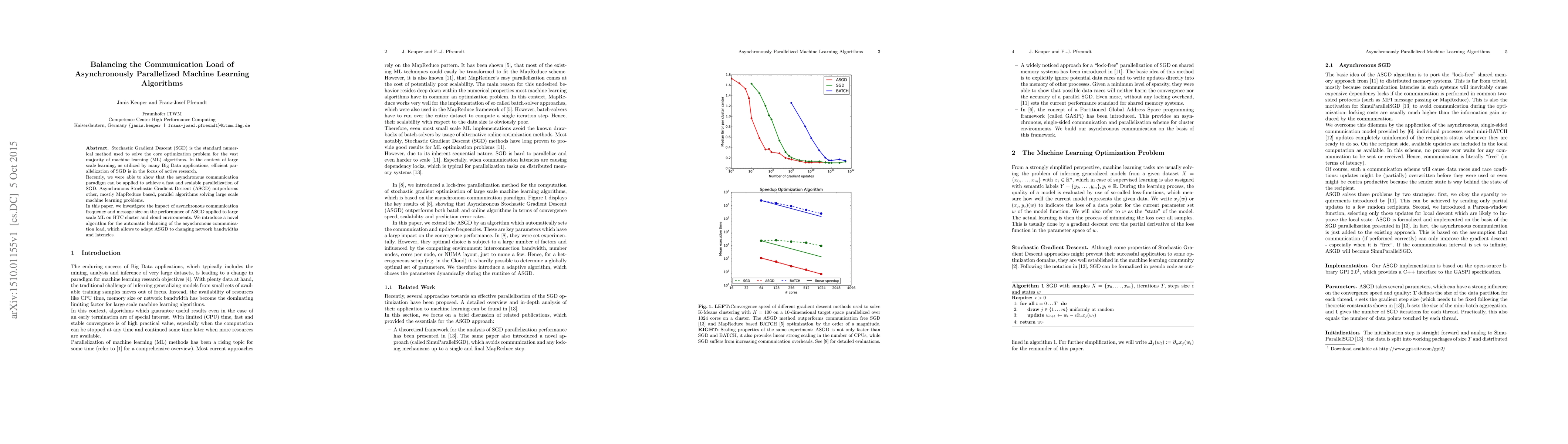 Stochastic Gradient Descent (SGD) is the standard numerical method used to solve the core optimization problem for the vast majority of machine learning (ML) algorithms. In the context of large scale learning, as utilized by many Big Data applications, efficient parallelization of SGD is in the focus of active research. Recently, we were able to show that the asynchronous communication paradigm can be applied to achieve a fast and scalable parallelization of SGD. Asynchronous Stochastic Gradient Descent (ASGD) outperforms other, mostly MapReduce based, parallel algorithms solving large scale machine learning problems. In this paper, we investigate the impact of asynchronous communication frequency and message size on the performance of ASGD applied to large scale ML on HTC cluster and cloud environments. We introduce a novel algorithm for the automatic balancing of the asynchronous communication load, which allows to adapt ASGD to changing network bandwidths and latencies.