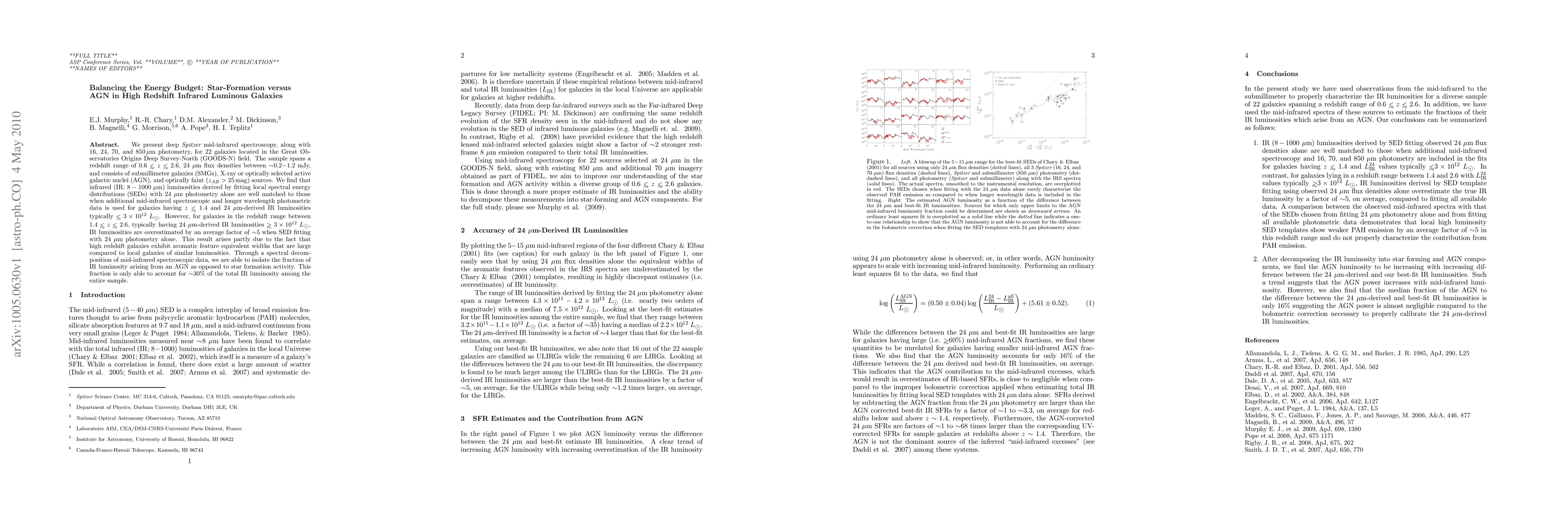 This study uses {\it Spitzer} mid-infrared spectroscopy and multi-wavelength photometry to analyze 22 high-redshift infrared luminous galaxies. It finds that while 24~$\mu$m luminosity alone can match IR luminosities for lower redshift galaxies, it overestimates IR luminosities by a factor of 5 for higher redshift galaxies, likely due to larger aromatic feature equivalent widths. Spectral decomposition reveals that AGN activity accounts for only about 30% of the total IR luminosity in the sample.