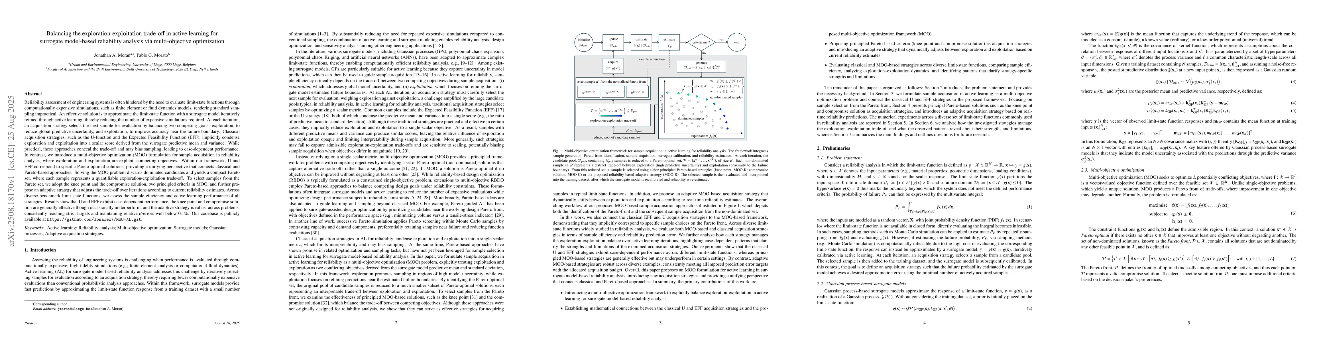 Reliability assessment of engineering systems is often hindered by the need to evaluate limit-state functions through computationally expensive simulations, rendering standard sampling impractical. An effective solution is to approximate the limit-state function with a surrogate model iteratively refined through active learning, thereby reducing the number of expensive simulations. At each iteration, an acquisition strategy selects the next sample by balancing two competing goals: exploration, to reduce global predictive uncertainty, and exploitation, to improve accuracy near the failure boundary. Classical strategies, such as the U-function and the Expected Feasibility Function (EFF), implicitly condense exploration and exploitation into a scalar score derived from the surrogate predictive mean and variance, concealing the trade-off and biasing sampling. We introduce a multi-objective optimization (MOO) formulation for sample acquisition in reliability analysis, where exploration and exploitation are explicit, competing objectives. Within our framework, U and EFF correspond to specific Pareto-optimal solutions, providing a unifying perspective that connects classical and Pareto-based approaches. Solving the MOO problem discards dominated candidates, yielding a compact Pareto set, with samples representing a quantifiable exploration-exploitation trade-off. To select samples from the Pareto set, we adopt the knee point and the compromise solution, and further propose a strategy that adjusts the trade-off according to reliability estimates. Across benchmark limit-state functions, we assess the sample efficiency and active learning performance of all strategies. Results show that U and EFF exhibit case-dependent performance, knee and compromise are generally effective, and the adaptive strategy is robust, consistently reaching strict targets and maintaining relative errors below 0.1%.