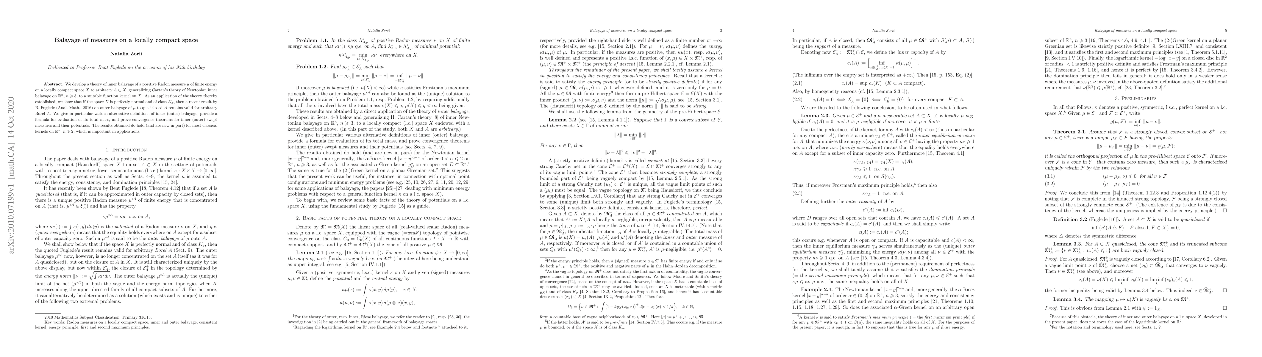 This paper develops a generalized theory of inner balayage for positive Radon measures on locally compact spaces, extending Cartan's Newtonian inner balayage. It proves that Bent Fuglede's result on outer balayage remains valid for arbitrary Borel sets in perfectly normal, $K_\sigma$ spaces.