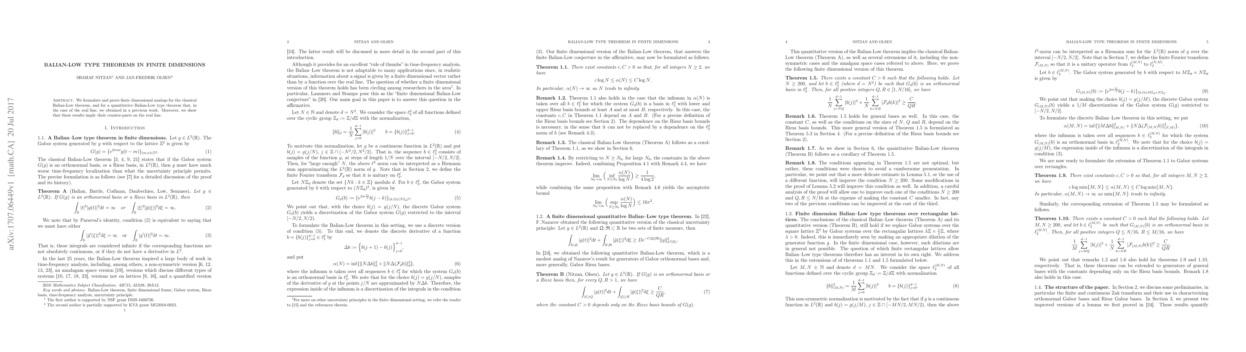 Researchers developed finite-dimensional analogs of the Balian-Low theorem, a key result that relates to signal processing and Fourier analysis, with implications for various fields including physics and engineering.