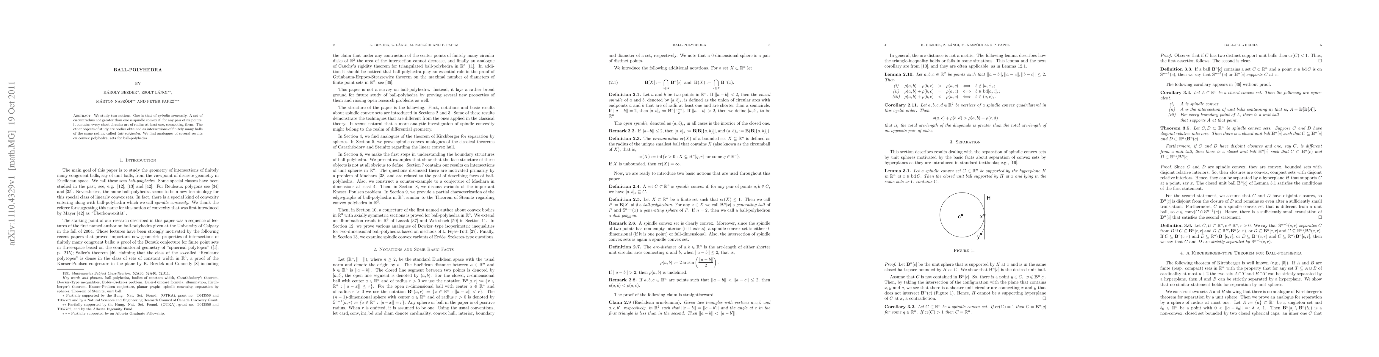 This paper investigates spindle convexity and ball-polyhedra, establishing analogues of classical convex polyhedral results for sets defined by intersections of balls of uniform radius.
