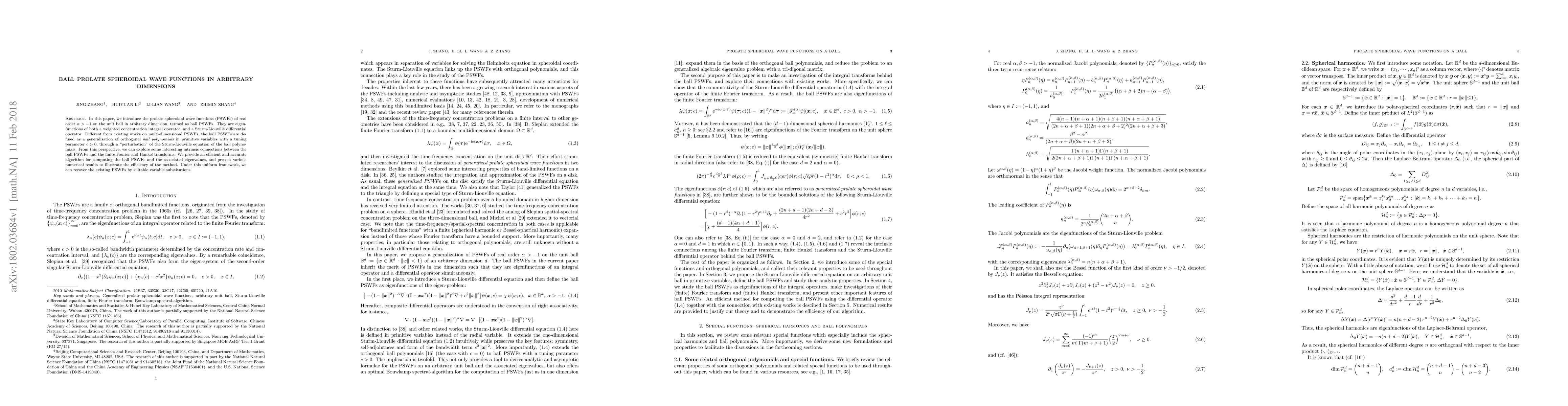 This paper introduces prolate spheroidal wave functions (PSWFs) on the unit ball in arbitrary dimensions, termed ball PSWFs, which generalize orthogonal ball polynomials via a perturbation of the Sturm-Liouville equation. The authors provide an efficient algorithm for computing these ball PSWFs and demonstrate their connections to finite Fourier and Hankel transforms.