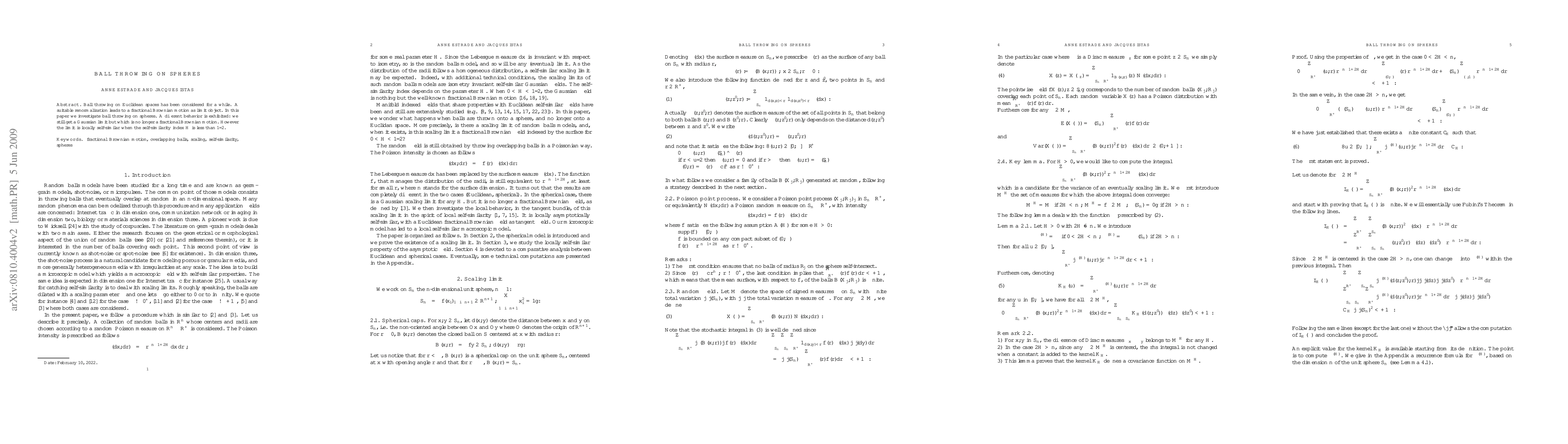Researchers investigate ball throwing on spheres, finding a Gaussian limit with local self-similarity when the self-similarity index is less than 1/2, contrasting with the expected fractional Brownian motion.