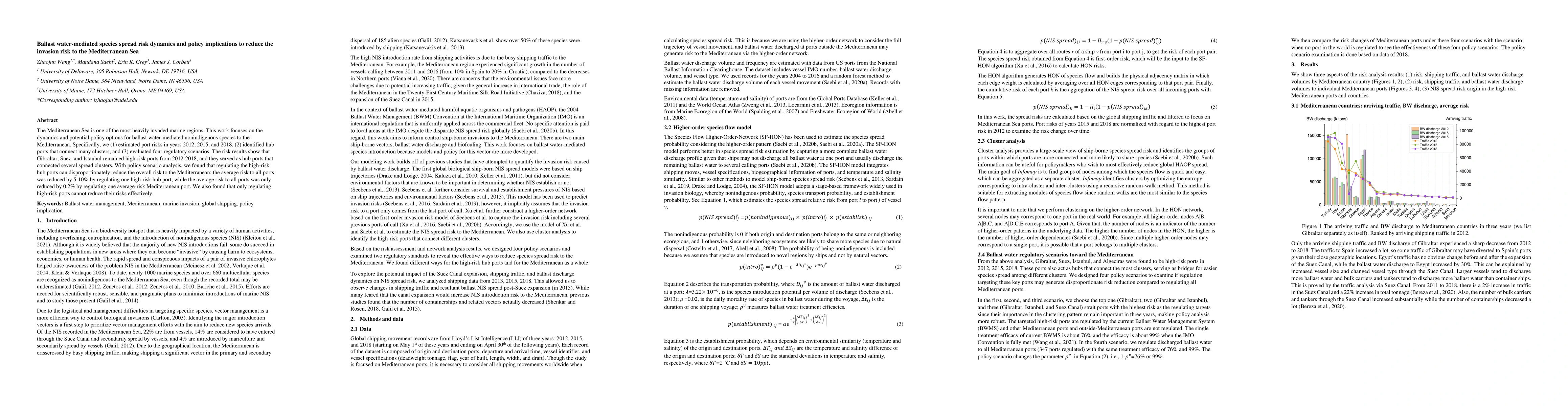 The Mediterranean Sea is one of the most heavily invaded marine regions. This work focuses on the dynamics and potential policy options for ballast water-mediated nonindigenous species to the Mediterranean. Specifically, we (1) estimated port risks in years 2012, 2015, and 2018, (2) identified hub ports that connect many clusters, and (3) evaluated four regulatory scenarios. The risk results show that Gibraltar, Suez, and Istanbul remained high-risk ports from 2012-2018, and they served as hub ports that connected several spread clusters. With policy scenario analysis, we found that regulating the high-risk hub ports can disproportionately reduce the overall risk to the Mediterranean: the average risk to all ports was reduced by 5-10% by regulating one high-risk hub port, while the average risk to all ports was only reduced by 0.2% by regulating one average-risk Mediterranean port. We also found that only regulating high-risk ports cannot reduce their risks effectively.