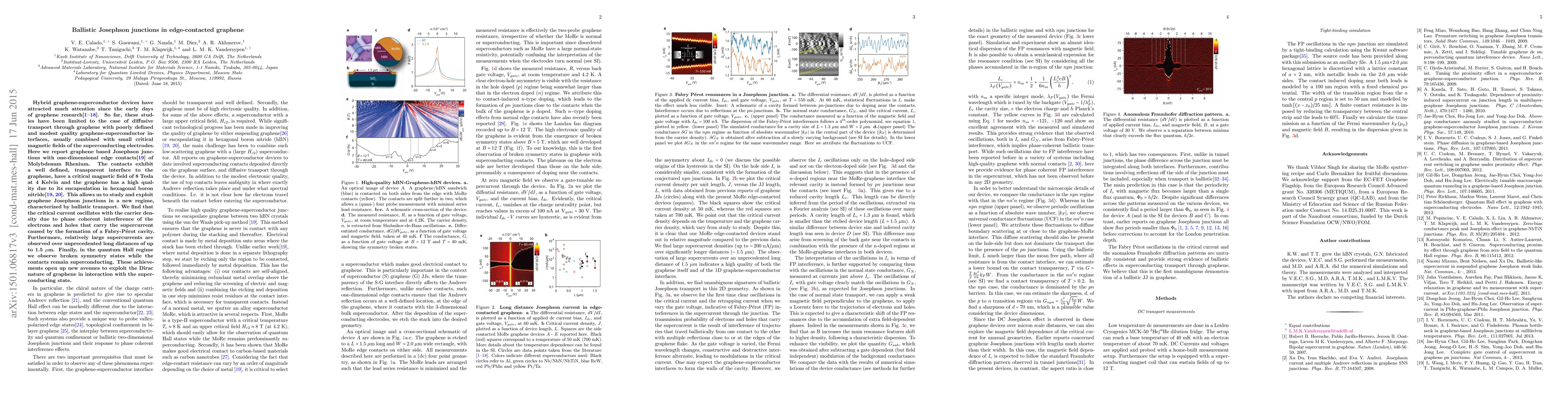 This study presents high-quality ballistic Josephson junctions in graphene with Molybdenum Rhenium edge contacts, showing critical currents oscillating with carrier density due to phase interference, and large supercurrents over distances up to 1.5 μm, revealing new possibilities for exploiting graphene's Dirac nature in superconducting interfaces.