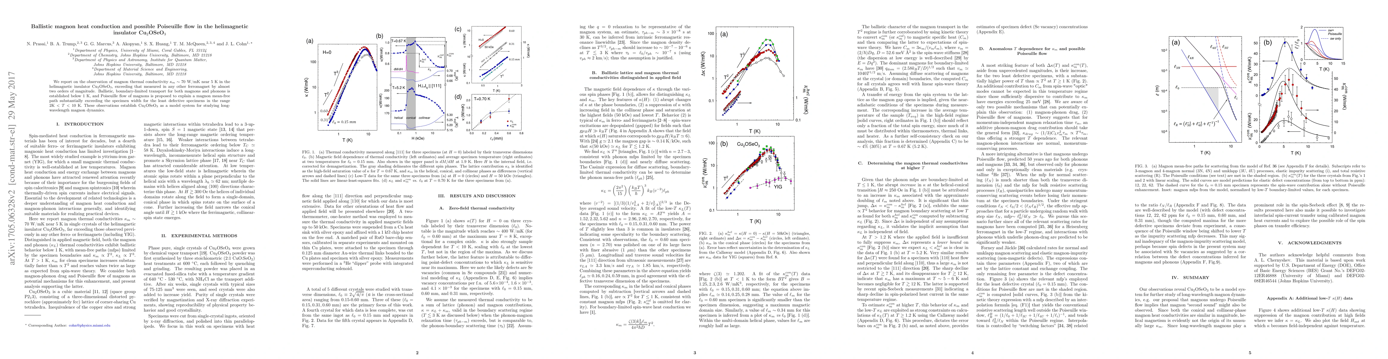 K, and Poiseuille flow of magnons is proposed to explain a magnon mean-free