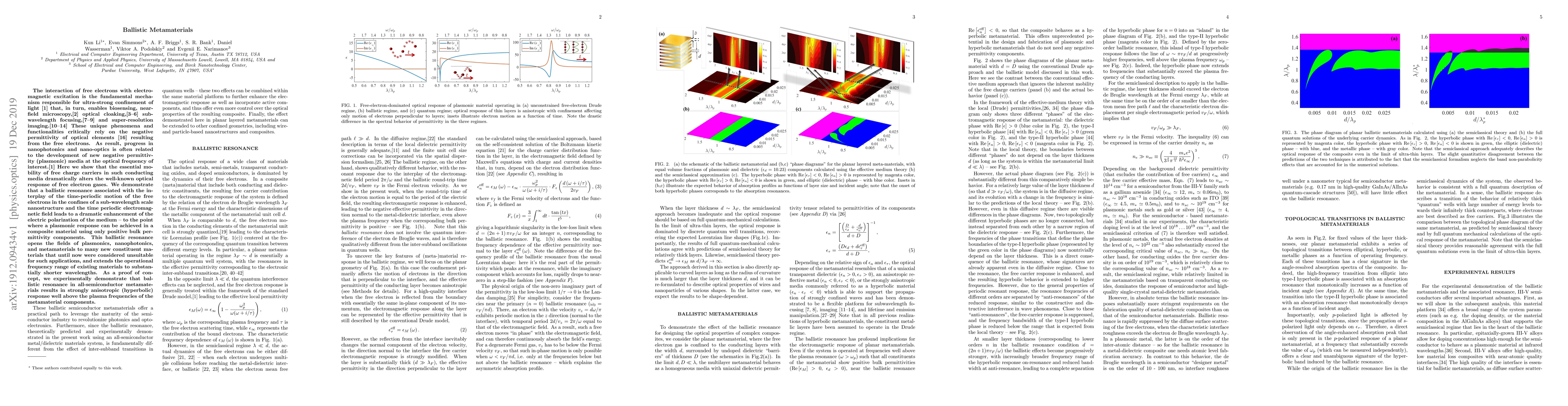 The interaction of free electrons with electromagnetic excitation is the fundamental mechanism responsible for ultra-strong confinement of light that, in turn, enables biosensing, near-field microscopy, optical cloaking, sub-wavelength focusing, and super-resolution imaging. These unique phenomena and functionalities critically rely on the negative permittivity of optical elements resulting from the free electrons. As result, progress in nanophotonics and nano-optics is often related to the development of new negative permittivity (plasmonic) media at the optical frequency of interest. Here we show that the essential mobility of free charge carriers in such conducting media dramatically alters the well-known optical response of free electron gases. We demonstrate that a ballistic resonance associated with the interplay of the time-periodic motion of the free electrons in the confines of a sub-wavelength scale nanostructure and the time periodic electromagnetic field leads to a dramatic enhancement of the electric polarization of the medium - to the point where a plasmonic response can be achieved in a composite material using only positive bulk permittivity components. This ballistic resonance opens the fields of plasmonics, nanophotonics, and metamaterials to many new constituent materials that until now were considered unsuitable for such applications, and extends the operational frequency range of existing materials to substantially shorter wavelengths. As a proof of concept, we experimentally demonstrate that ballistic resonance in all-semiconductor metamaterials results in strongly anisotropic (hyperbolic) response well above the plasma frequencies of the metamaterial components.
