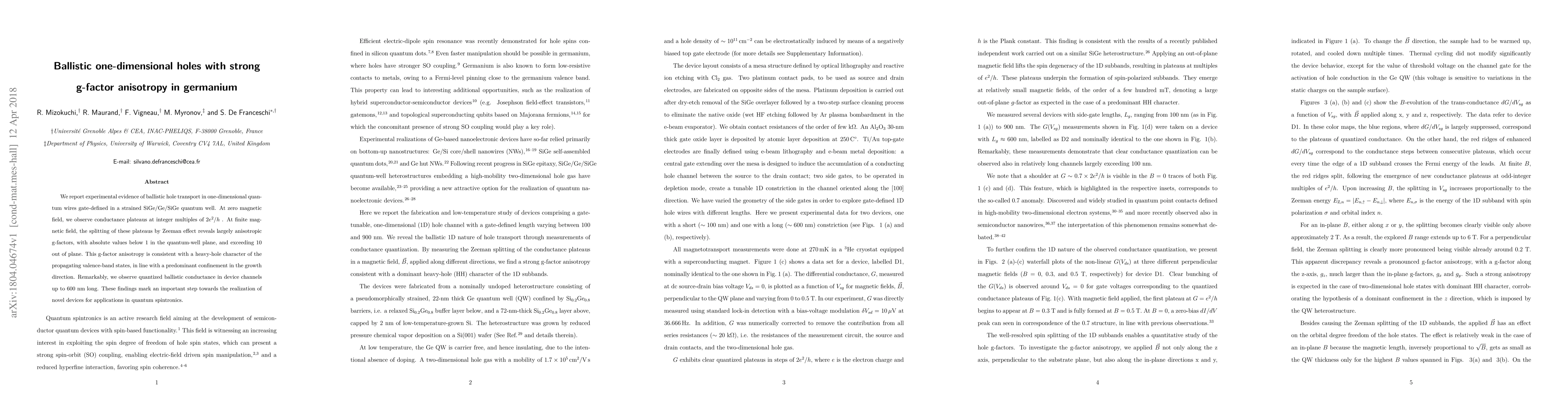 This paper reports ballistic one-dimensional hole transport in gate-defined quantum wires within a strained SiGe/Ge/SiGe quantum well, revealing quantized conductance plateaus and strong g-factor anisotropy, indicative of a heavy-hole character, with potential implications for quantum spintronics.