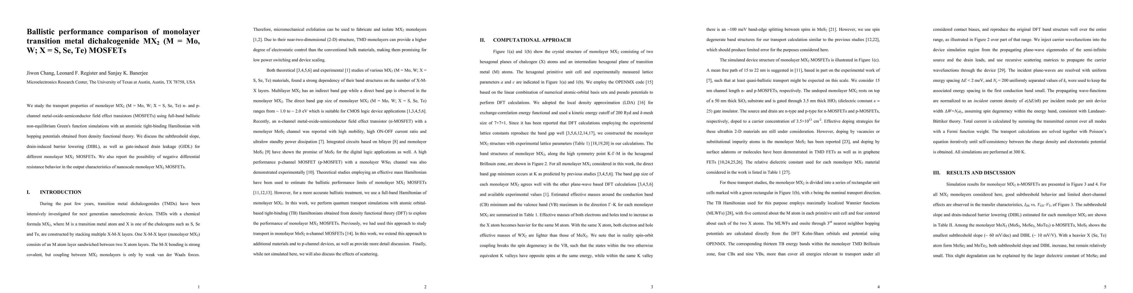 This paper investigates the ballistic transport properties of monolayer MX2 (M = Mo, W; X = S, Se, Te) MOSFETs using simulations, focusing on subthreshold slope, DIBL, GIDL, and potential negative differential resistance. The study employs full-band non-equilibrium Green's function methods with atomistic tight-binding parameters derived from density functional theory.