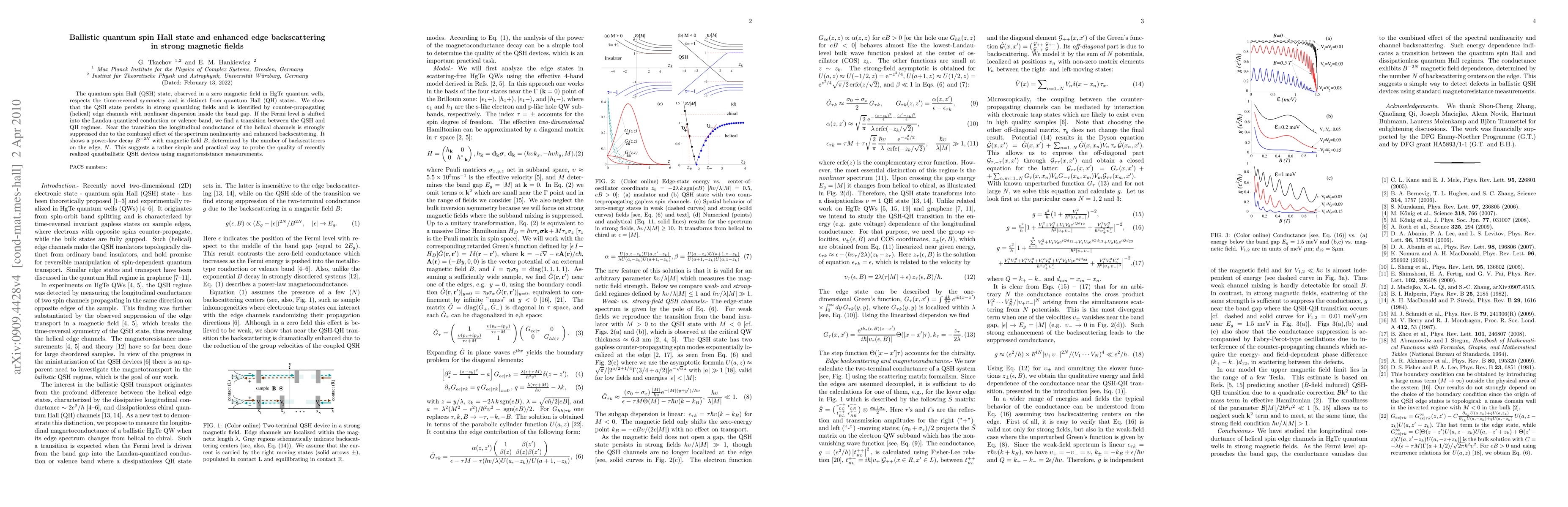 This paper investigates the ballistic quantum spin Hall (QSH) state in strong magnetic fields, demonstrating its persistence and identifying it through nonlinear helical edge channels. It reveals a transition between QSH and quantum Hall (QH) regimes, with enhanced backscattering leading to a power-law decay in longitudinal conductance, offering a practical method for assessing QSH device quality via magnetoresistance.