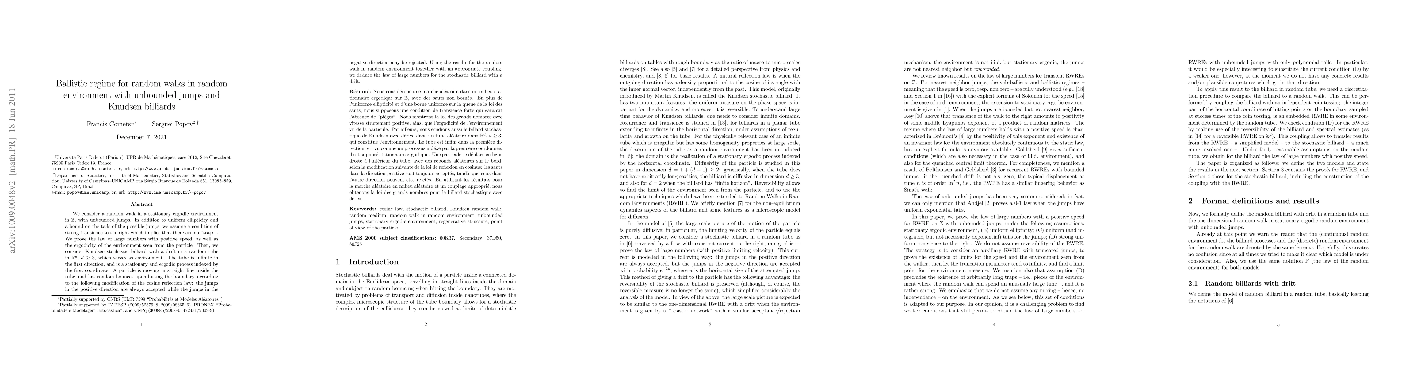 Researchers prove the law of large numbers for random walks in a stationary ergodic environment with unbounded jumps, and extend this result to stochastic billiards with drift in a random tube.
