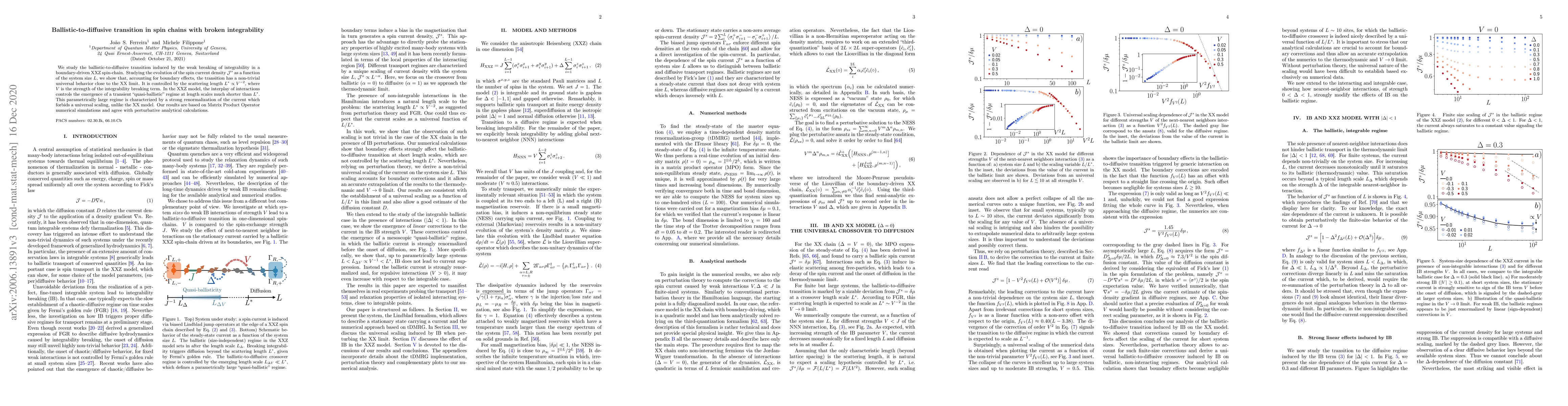 Research finds that breaking integrability in a spin chain induces a ballistic-to-diffusive transition, controlled by the scattering length, which depends on the strength of the integrability breaking term. This transition has non-trivial universal behavior near the XX limit.