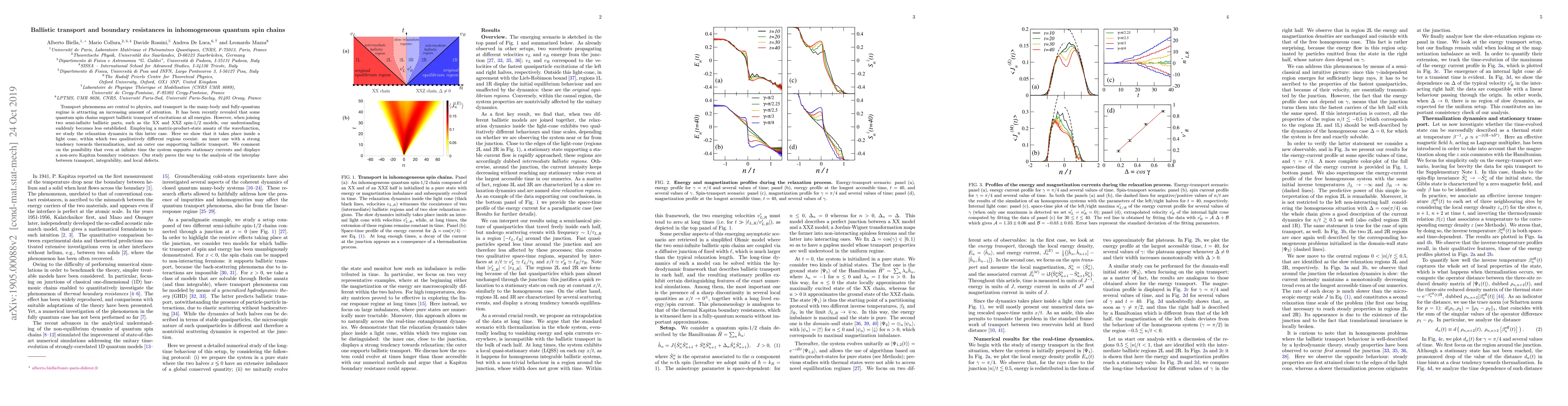 Transport phenomena are central to physics, and transport in the many-body and fully-quantum regime is attracting an increasing amount of attention. It has been recently revealed that some quantum spin chains support ballistic transport of excitations at all energies. However, when joining two semi-infinite ballistic parts, such as the XX and XXZ spin-1/2 models, our understanding suddenly becomes less established. Employing a matrix-product-state ansatz of the wavefunction, we study the relaxation dynamics in this latter case. Here we show that it takes place inside a light cone, within which two qualitatively different regions coexist: an inner one with a strong tendency towards thermalization, and an outer one supporting ballistic transport. We comment on the possibility that even at infinite time the system supports stationary currents and displays a non-zero Kapitza boundary resistance. Our study paves the way to the analysis of the interplay between transport, integrability, and local defects.