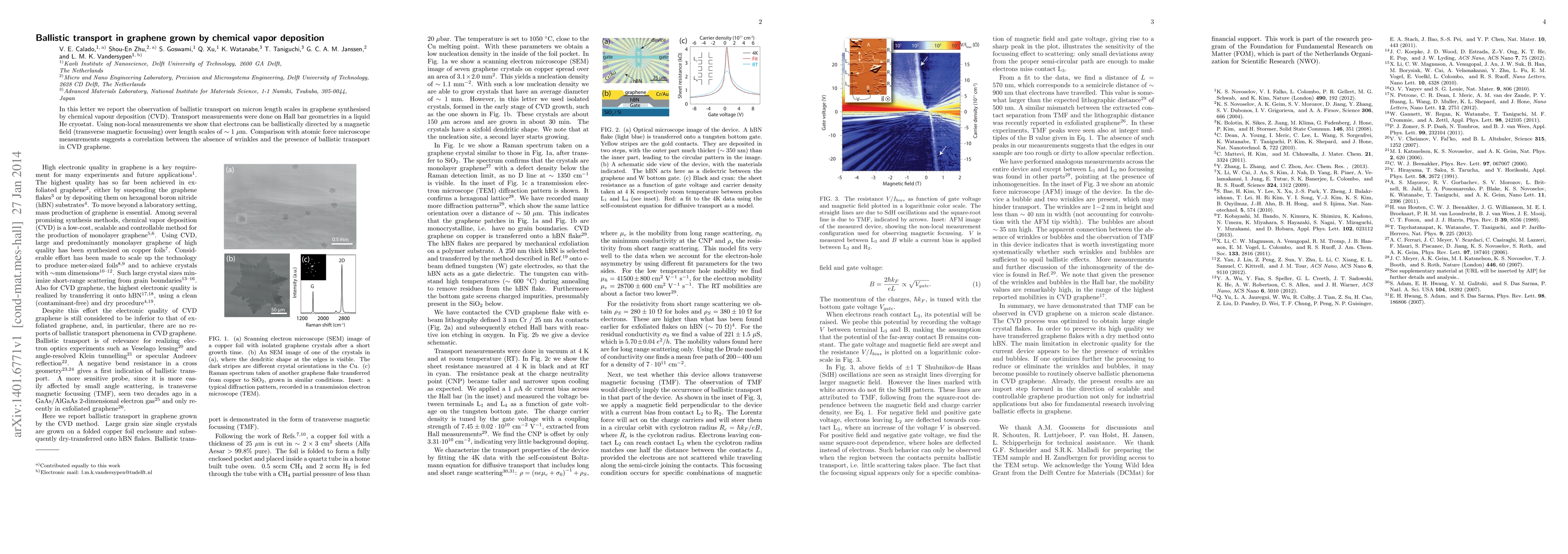 This paper observes ballistic transport over micron scales in CVD-grown graphene, demonstrating electrons can be directed by a magnetic field. The absence of wrinkles, as seen via atomic force microscopy, correlates with the presence of this ballistic transport.